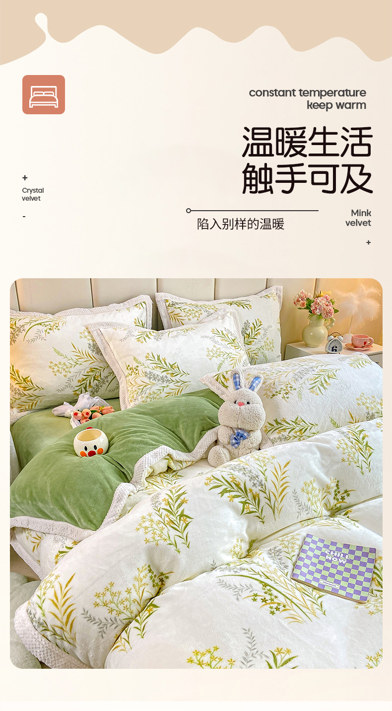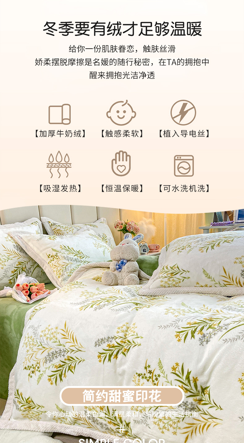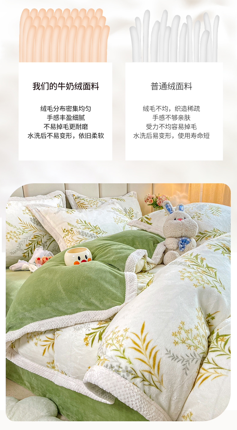 当前位置: 91家纺网 > 商品网购 > 床品套件 > 四件套 > 牛奶绒四件套 > 阿亮家纺 2025新款高克重大包边菠萝格牛奶绒活性印染四件套 田园花香