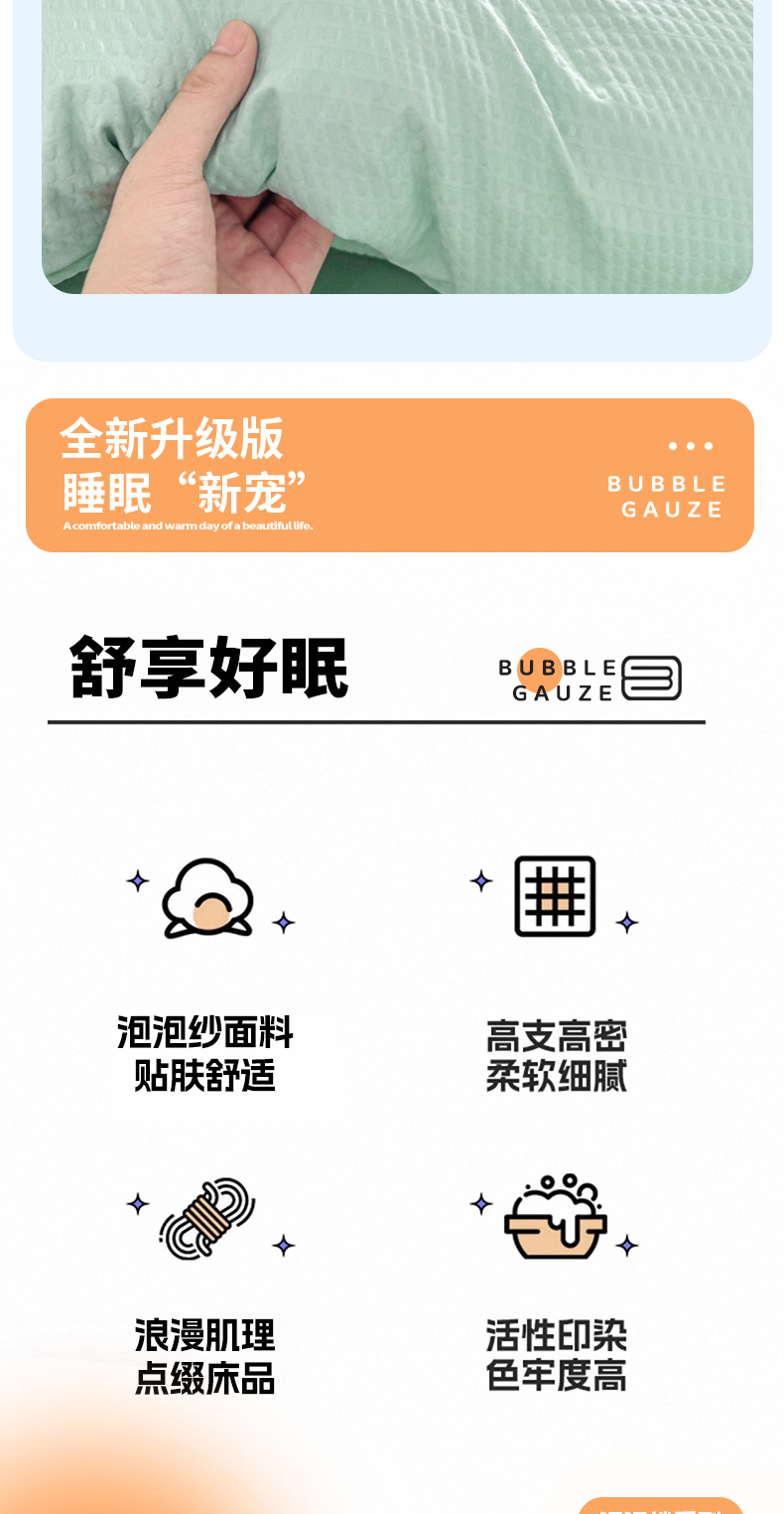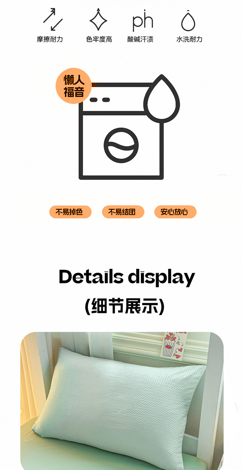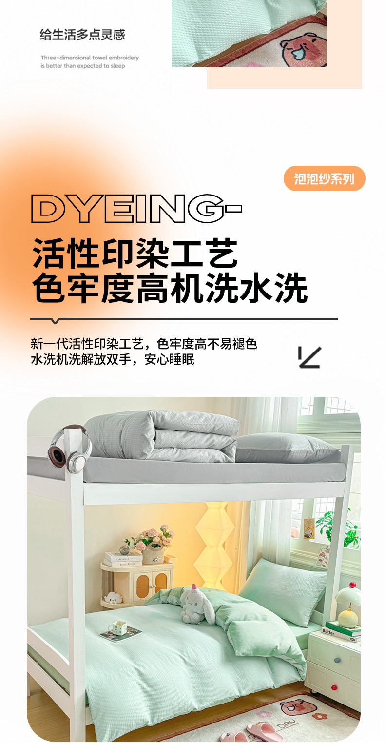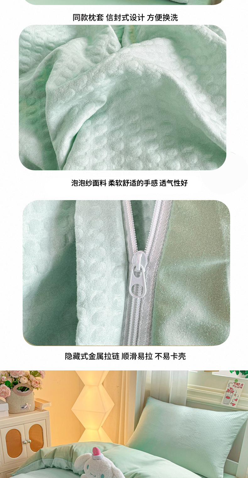 商品名称:麒东家纺 2025新款圆豆纱华夫格学生三件套 绿色