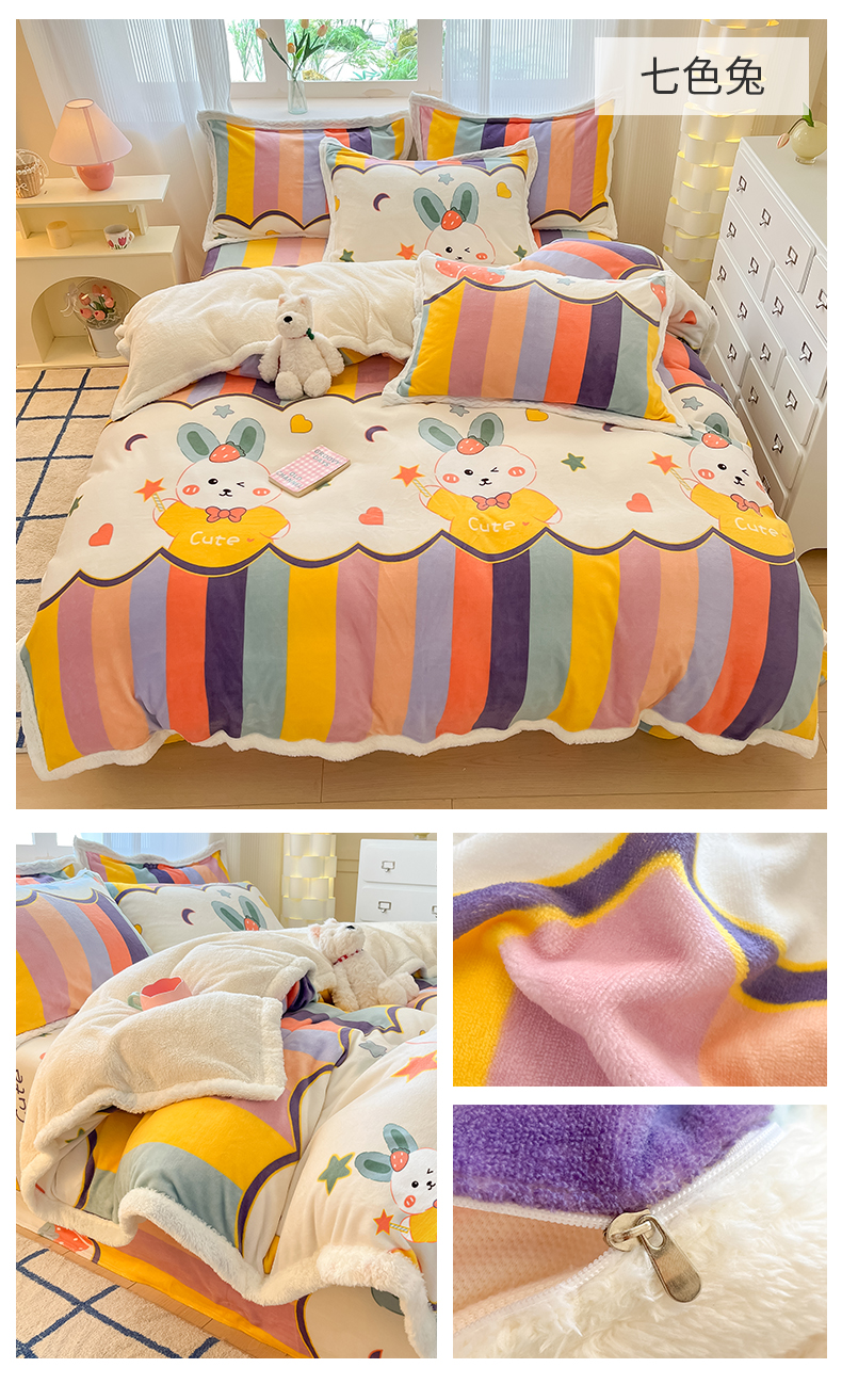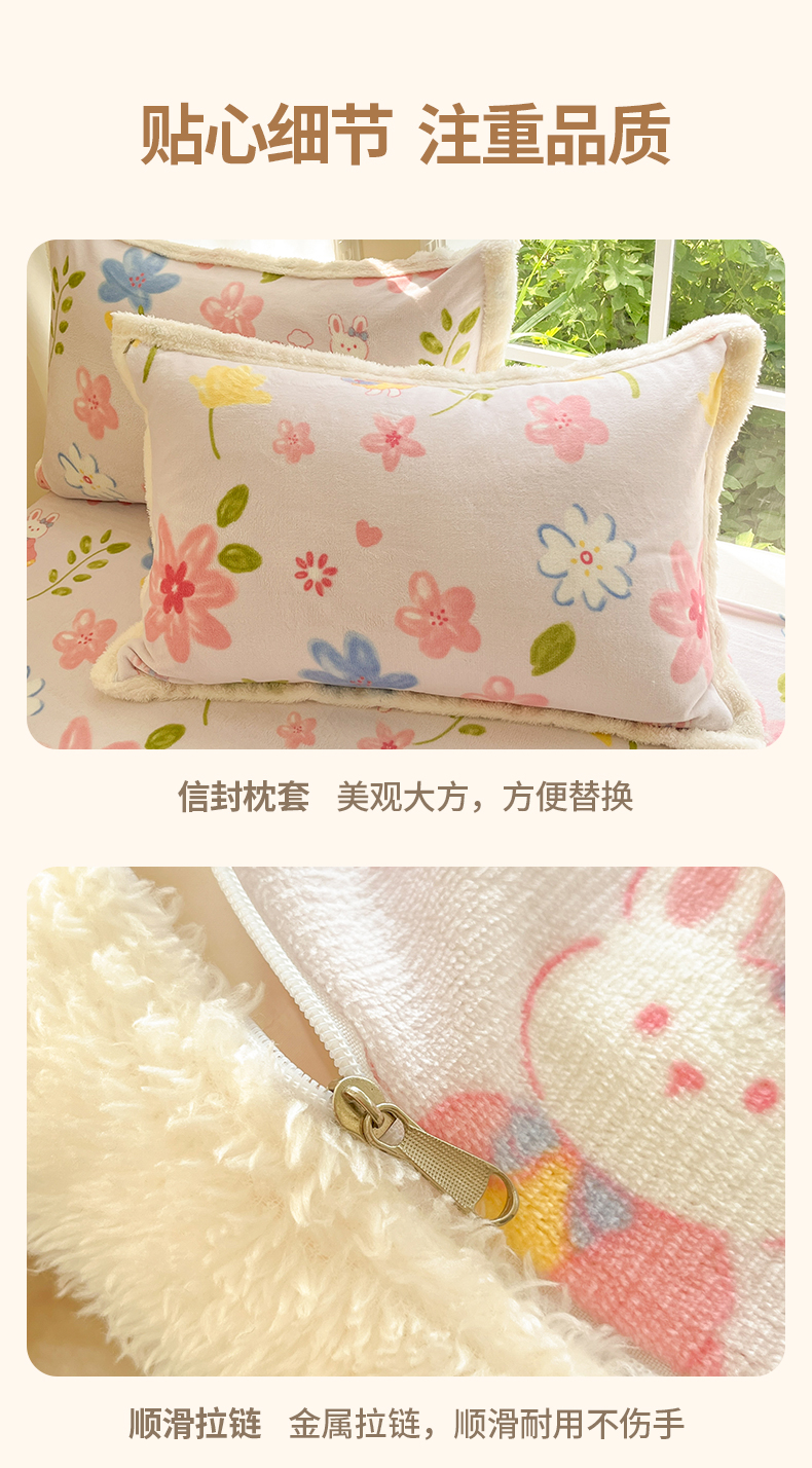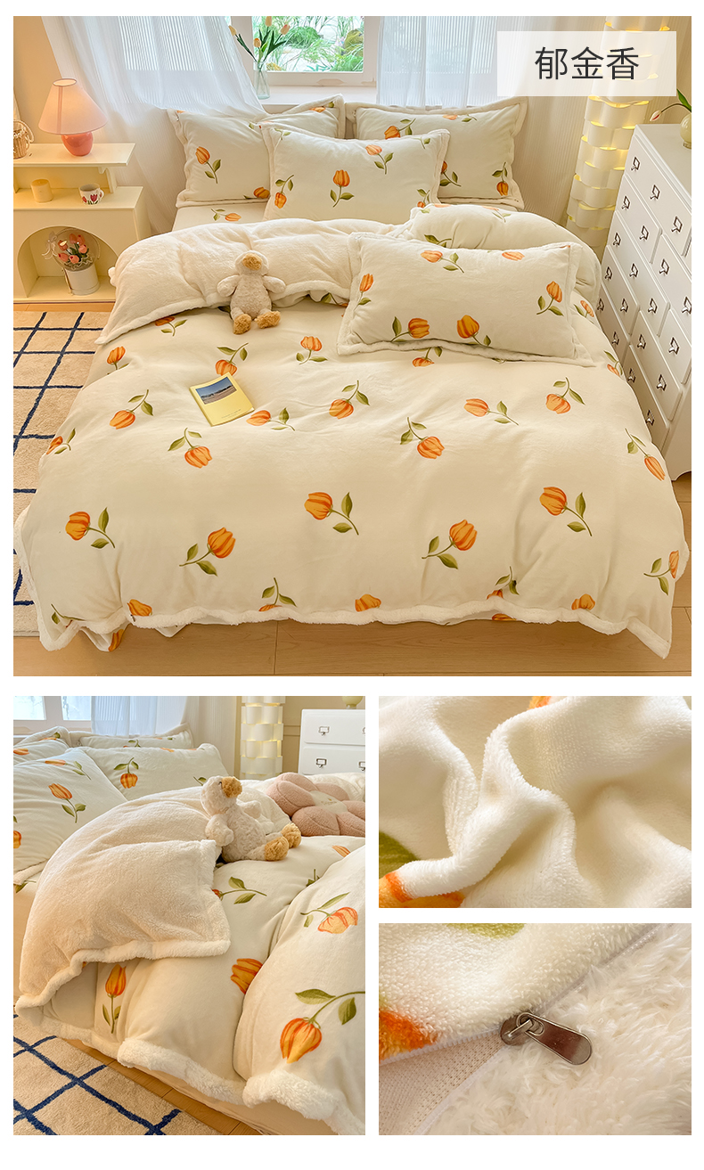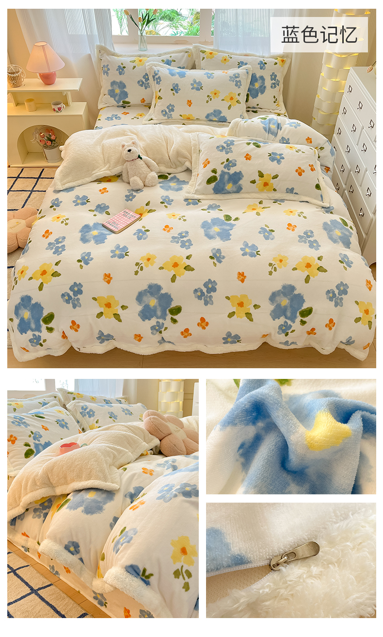 当前位置: 91家纺网 > 商品网购 > 床品套件 > 四件套 > 羊羔绒四件套 > 娜朵家纺 2025新款加厚包边羊羔绒印花四件套 花花世界