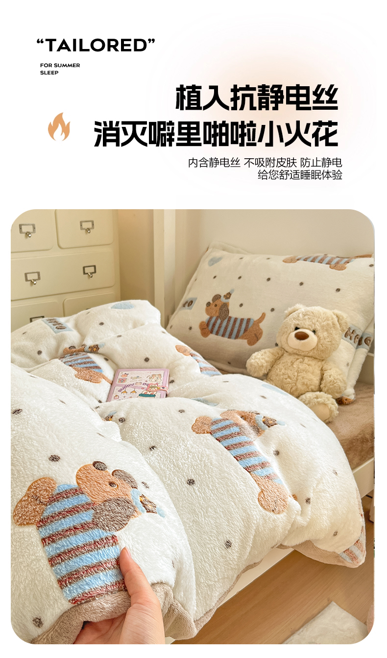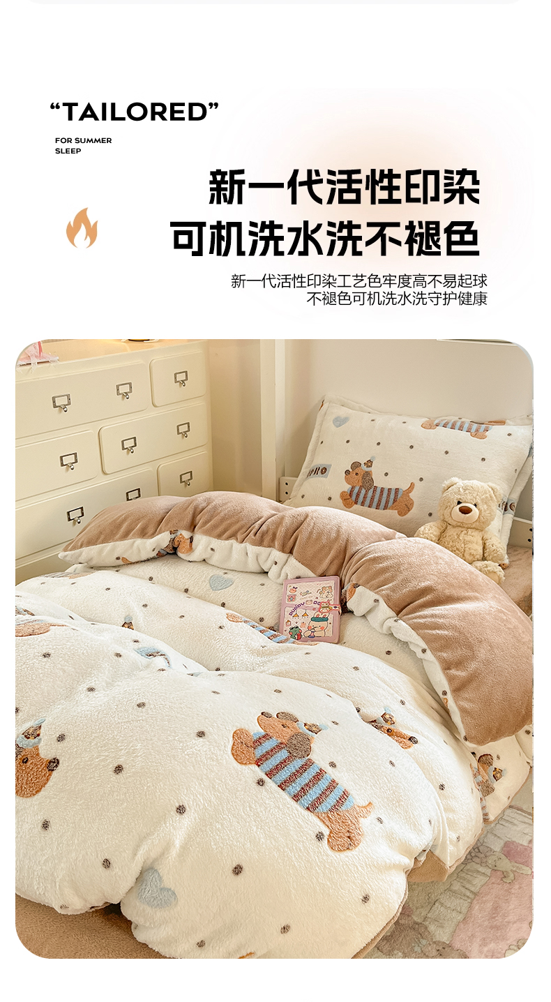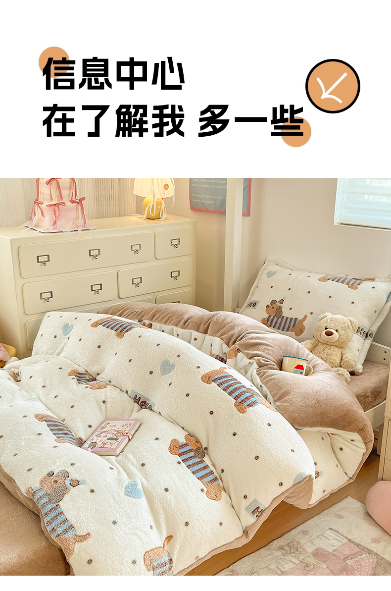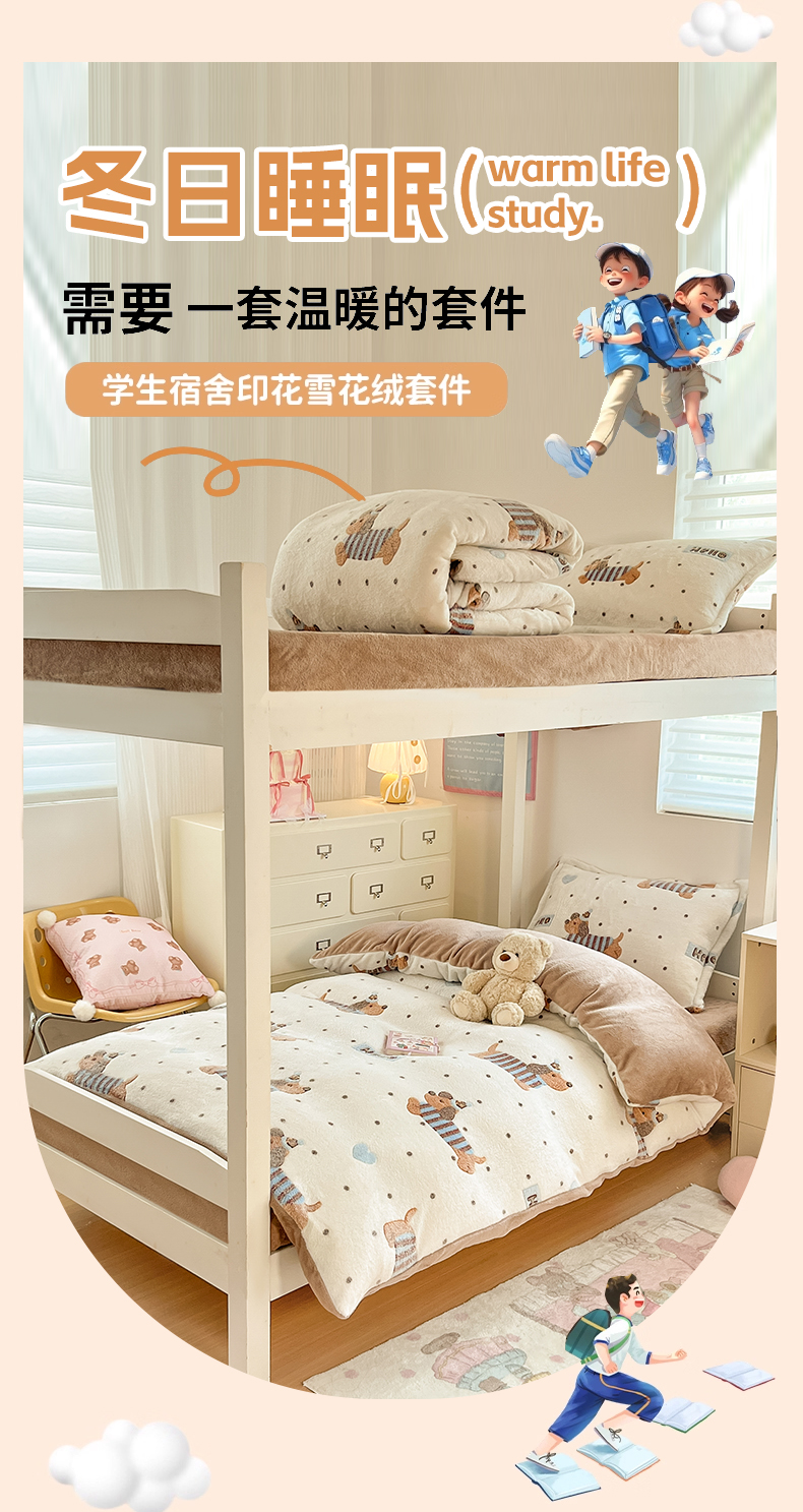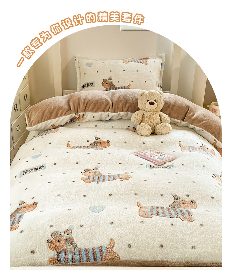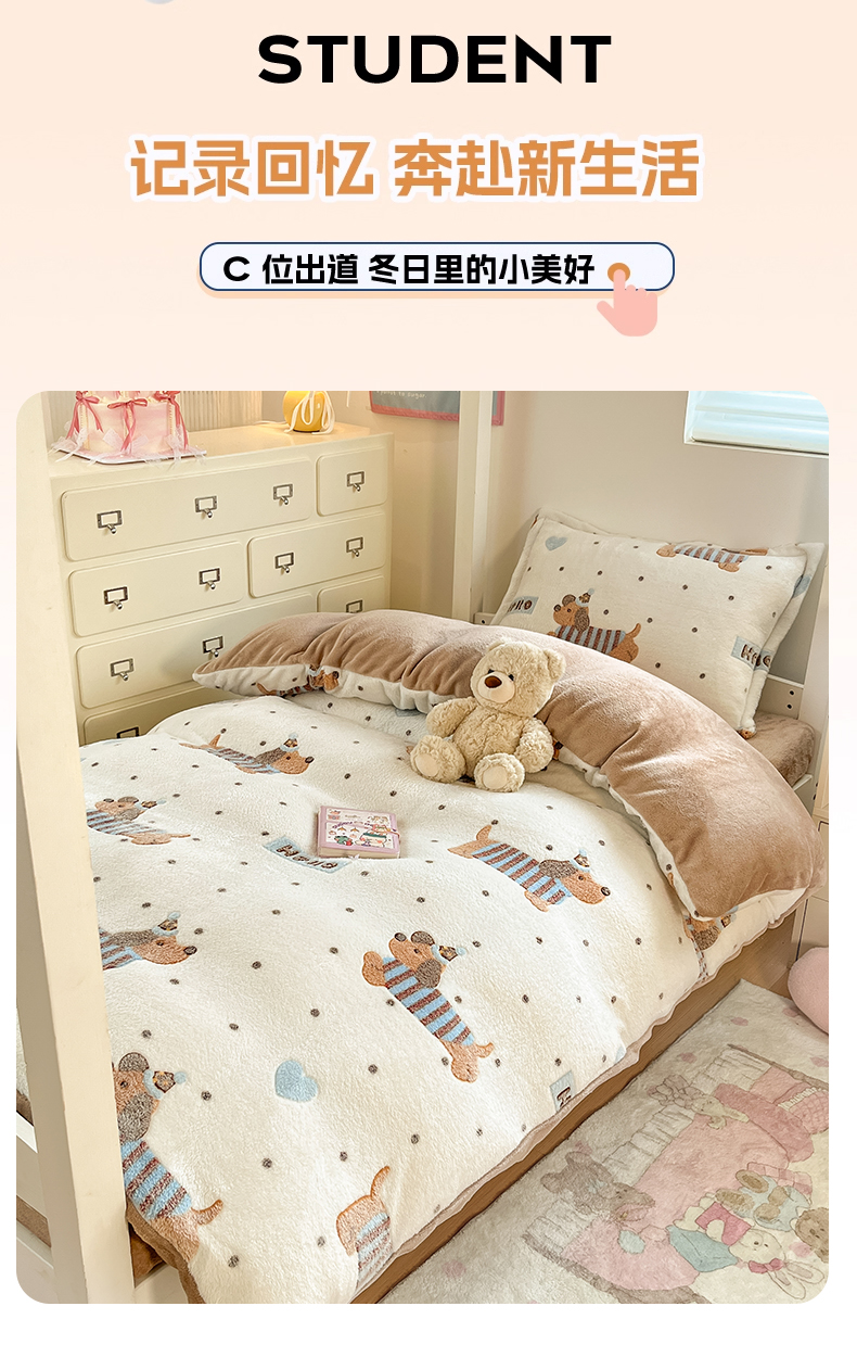 当前位置: 91家纺网 > 商品网购 > 床品套件 > 四件套 > 其它四件套 > 川悦生活 2025新款立体雪花绒印花四件套学生床系列二场景一 腊肠小点