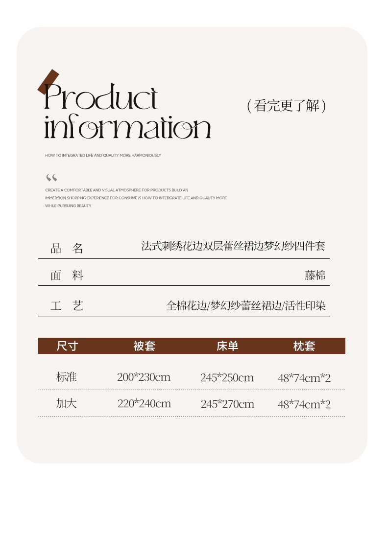 商品名称:庭笙 2025新款法式刺绣花边双层蕾丝裙边梦幻纱四件套-漫调小城 米白