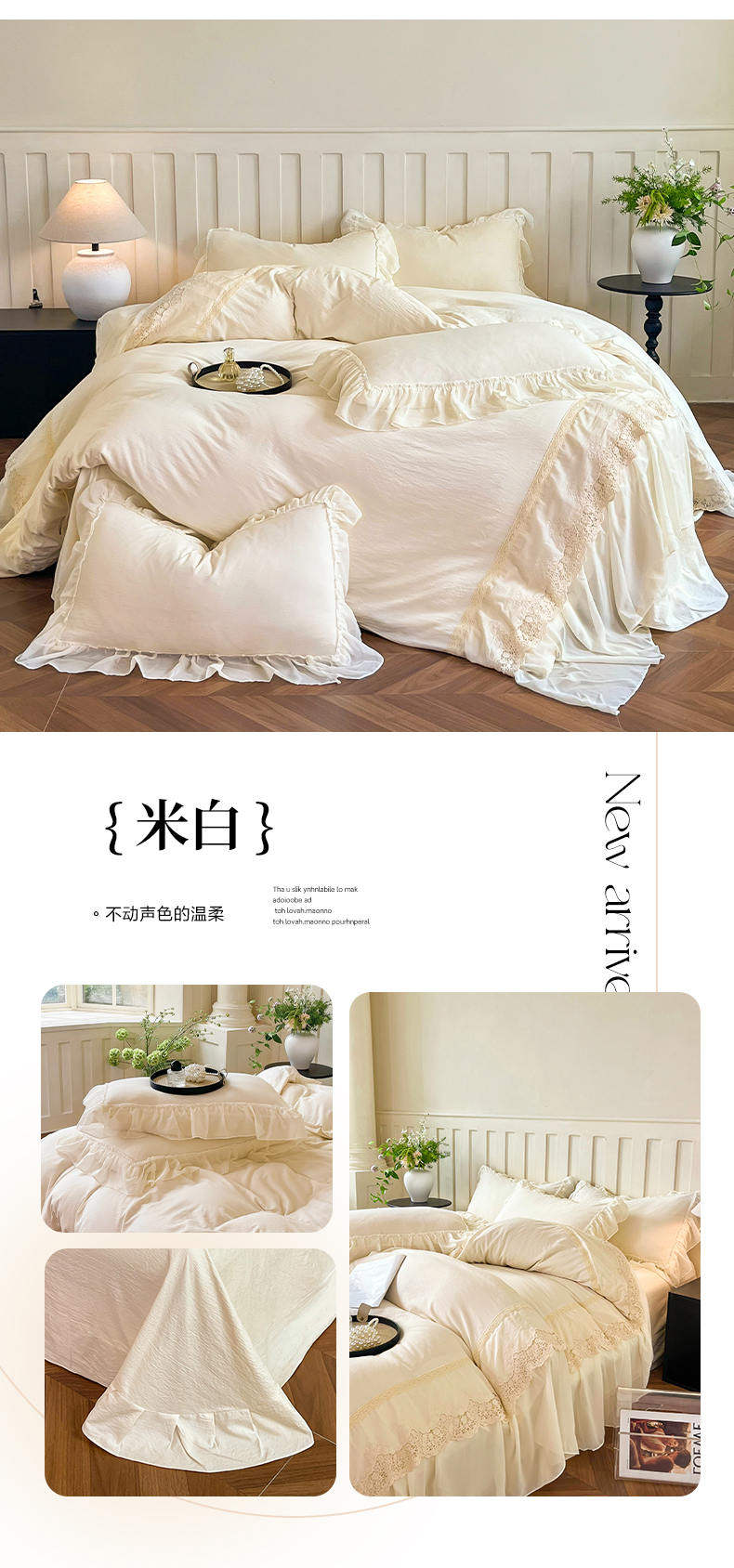 (总)庭笙 2025新款法式少女全棉镂空花边仙女梦幻纱蕾丝边四件套-清甜少女,清甜少女-米白,清甜少女-浅粉