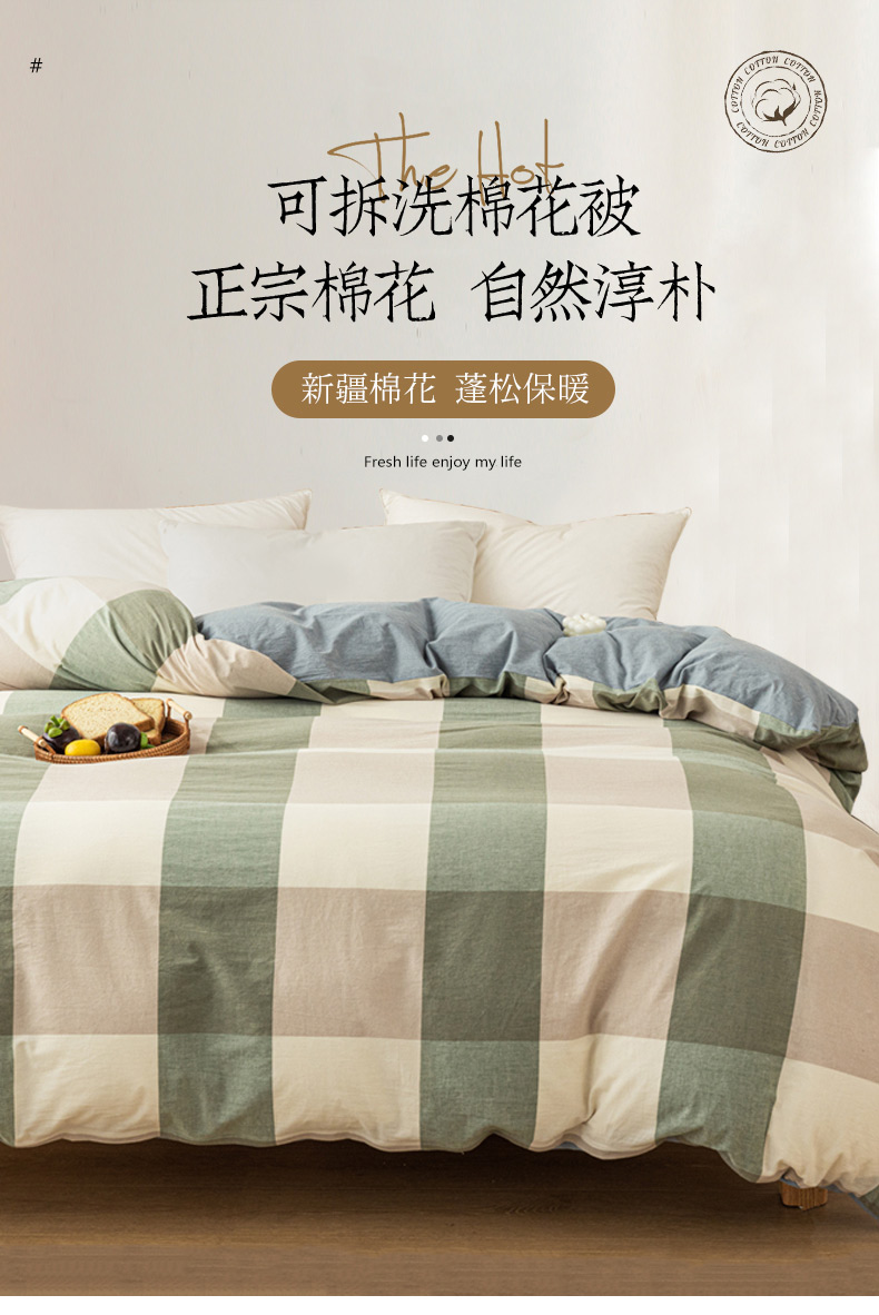 • 91家纺网 家纺一手货源 找家纺 悠米悠家 2025新款蓬松保暖可拆洗新疆棉花被子被芯 绿大格