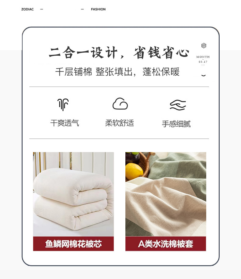 当前位置: 91家纺网 > 商品网购 > 被子 > 棉被 > 悠米悠家 2025新款蓬松保暖可拆洗新疆棉花被子被芯 绿大格