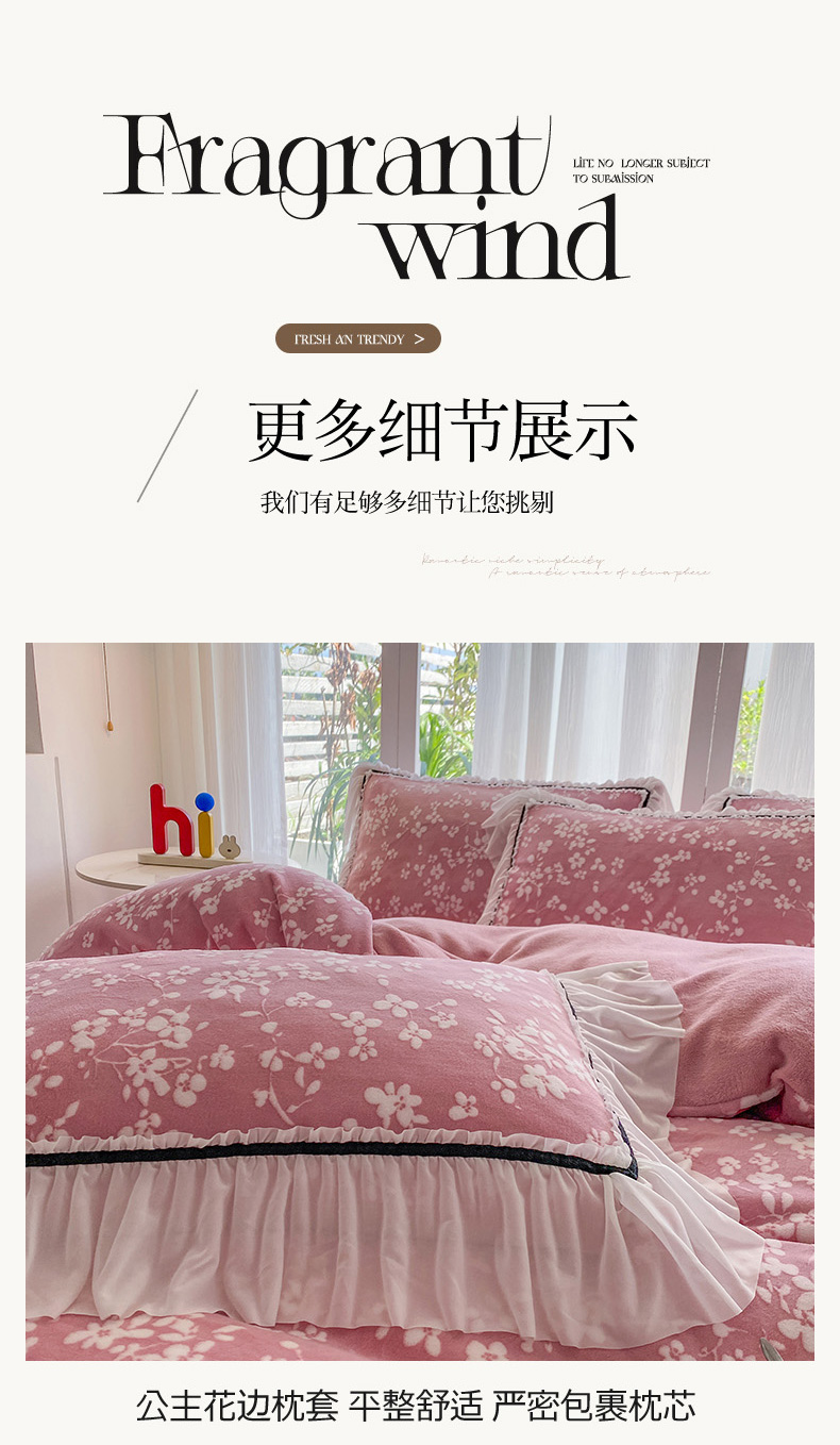 (总)恋尚羽家纺 2025新款韩版花边婴儿绒绣花大床裙四件套宝宝绒婴肤绒公主风韩式,大红色,豆沙色,粉色,湖蓝色,灰色,桔色,墨绿色,紫色
