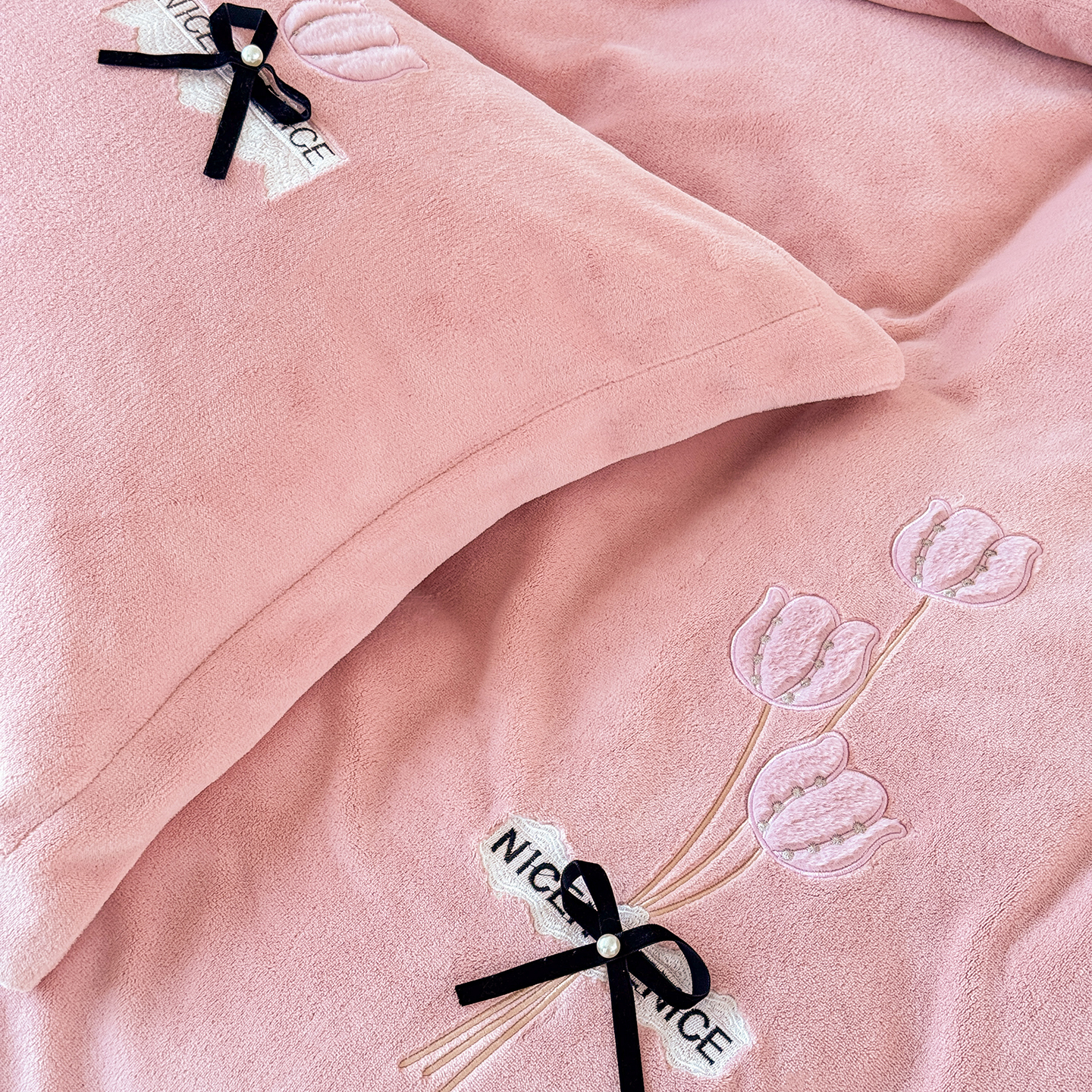 (总)恋尚羽家纺 2025秋冬热款刺绣牛奶绒四件套-郁金香,郁金香-豆沙,郁金香-粉玉,郁金香-灰色,郁金香-紫色