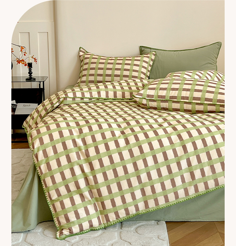 忆生活 2025秋冬全棉加厚磨毛贝壳边四件套格言-绿