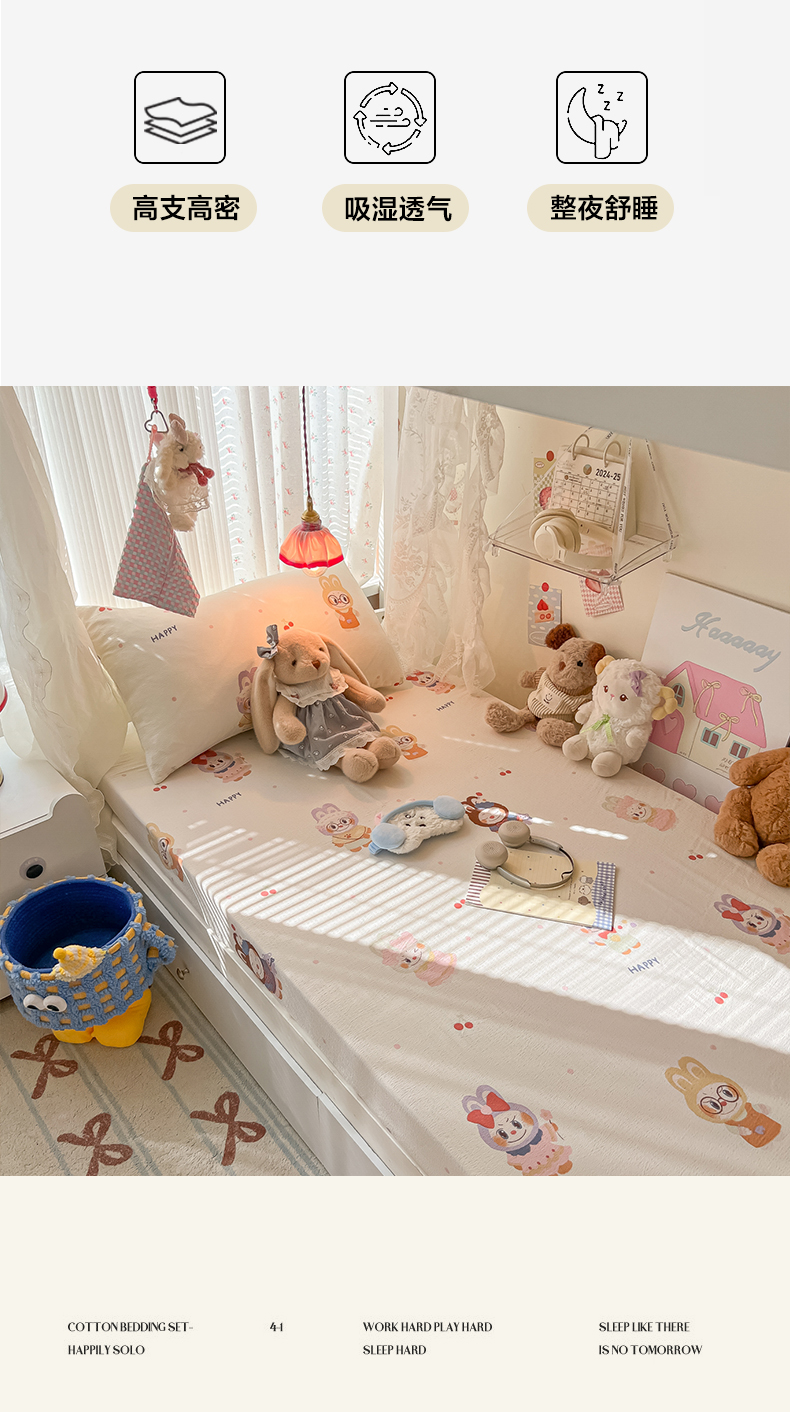 韩巢家纺 2025新款A类学生宿舍上下铺床笠单件床垫保护罩枕套三件套 拉布大王