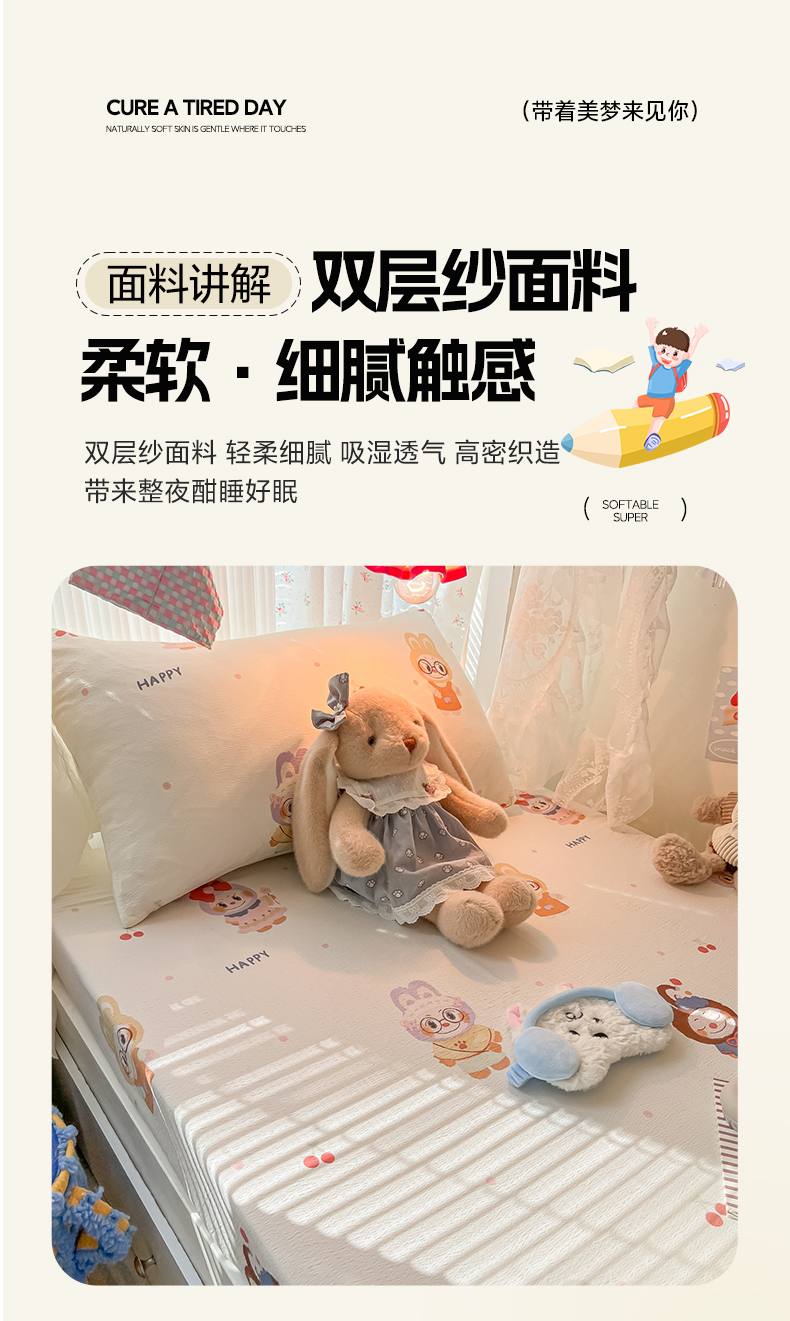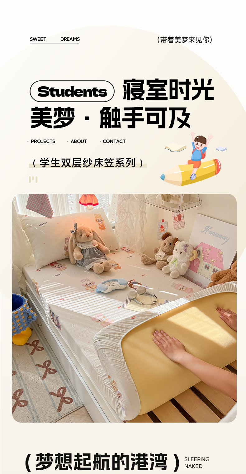 • 91家纺网 家纺一手货源 找家纺 韩巢家纺 2025新款A类学生宿舍上下铺床笠单件床垫保护罩枕套三件套 拉布大王