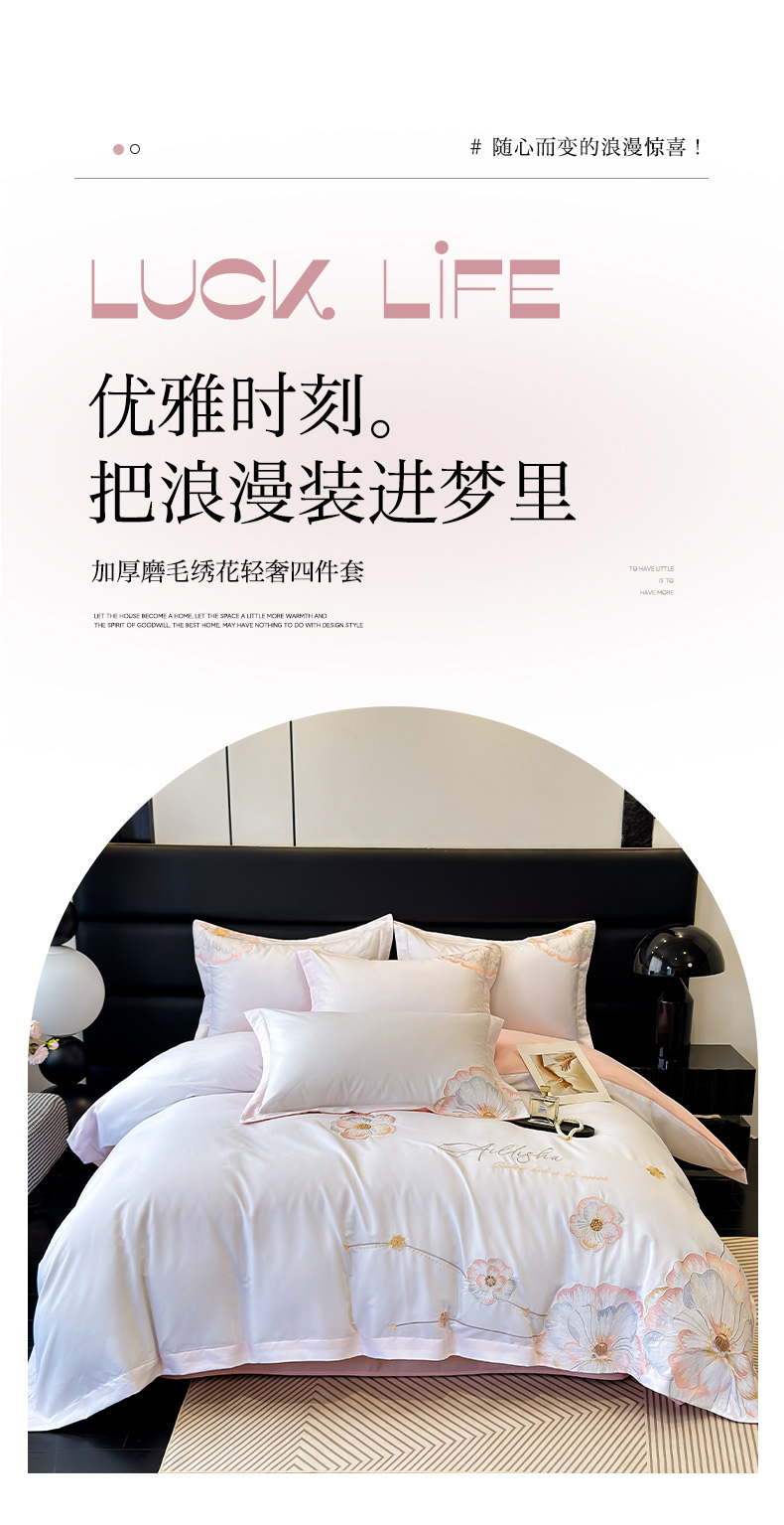 当前位置: 91家纺网 > 商品网购 > 床品套件 > 四件套 > 其它四件套 > 慕语家纺 2025新款亲肤棉刺绣四件套系列--维纳斯(专版花型) 维纳斯--米霜白