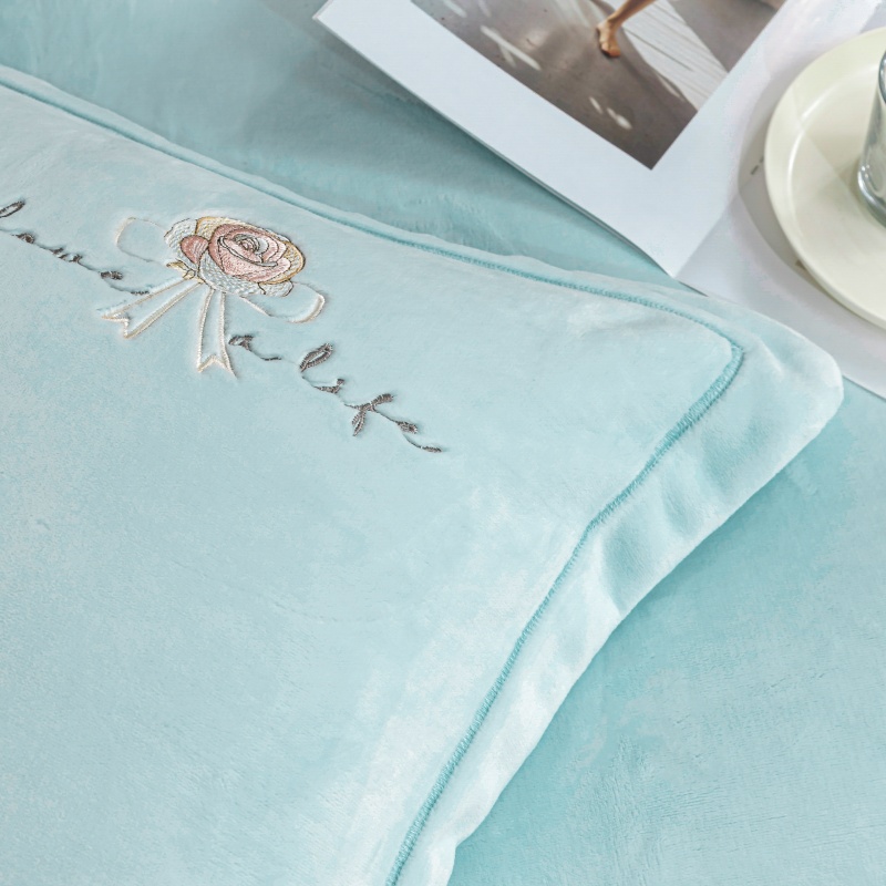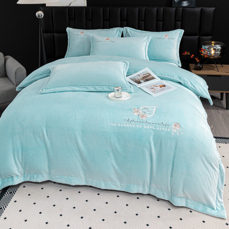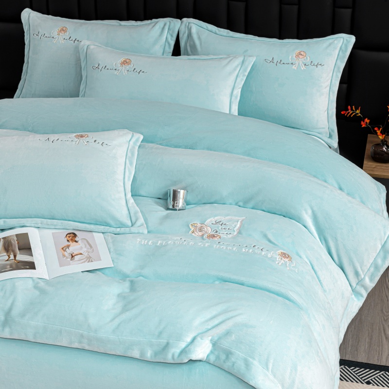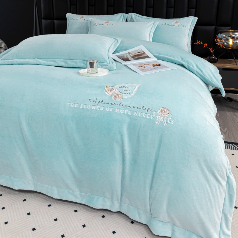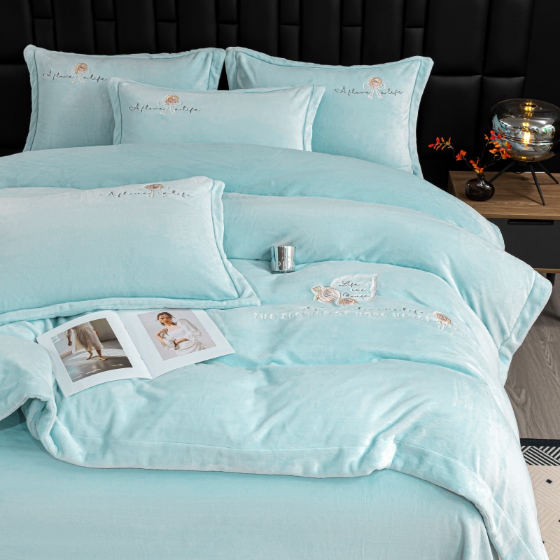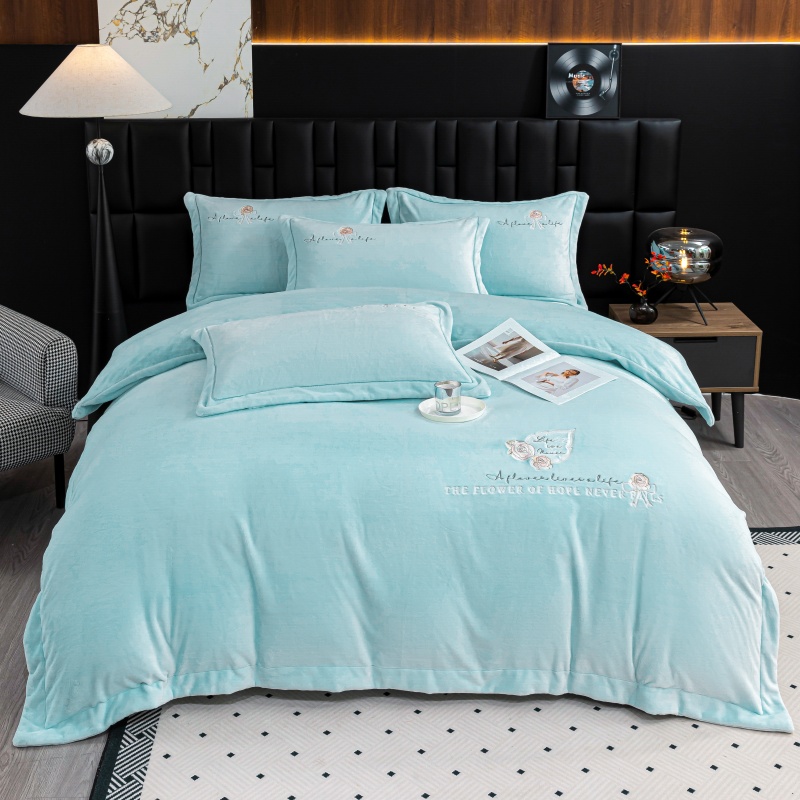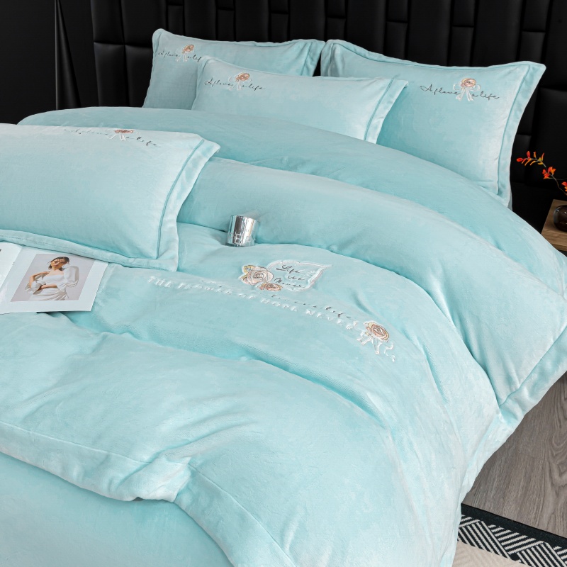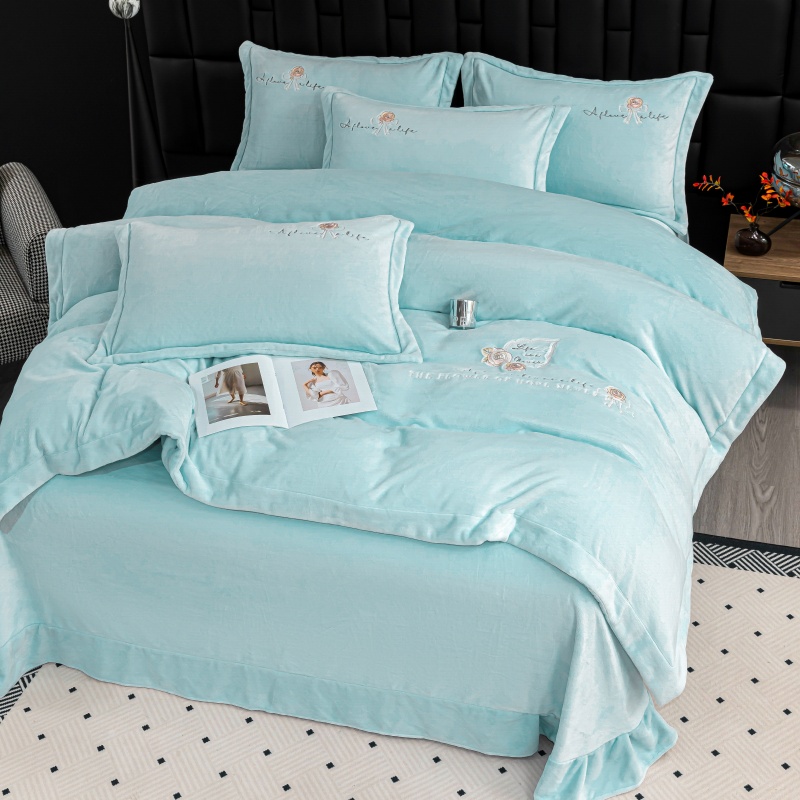 商品名称:优姿家纺 2025新款300克全消光牛奶蛋白蚕丝绒四件套 凯丽-水绿