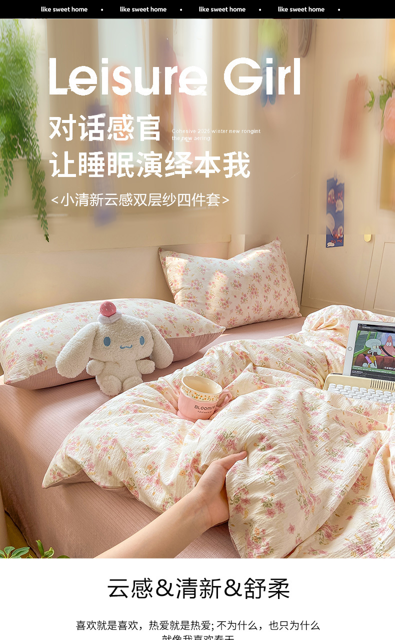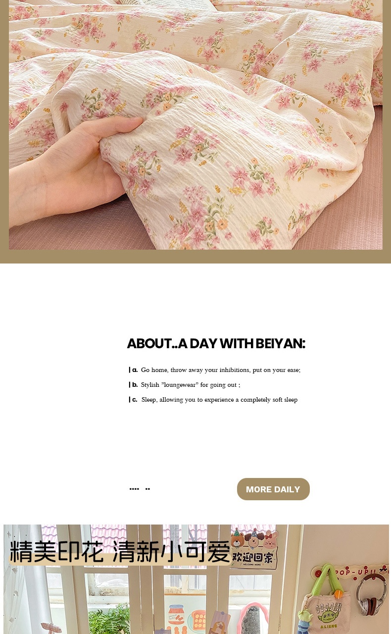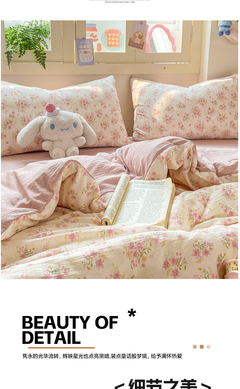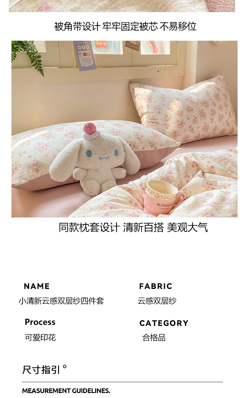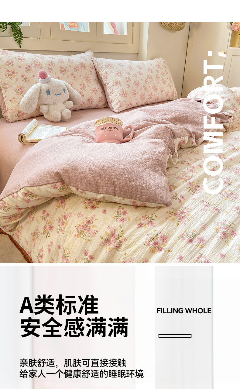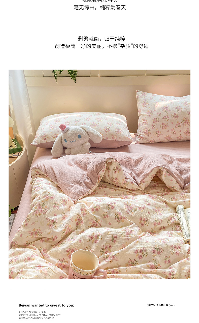 当前位置: 91家纺网 > 商品网购 > 床品套件 > 四件套 > 双层纱四件套 > 夜笙家纺 2025秋冬网红爆款110克水洗棉高克重皱皱纱(提供买家秀) 花束粉