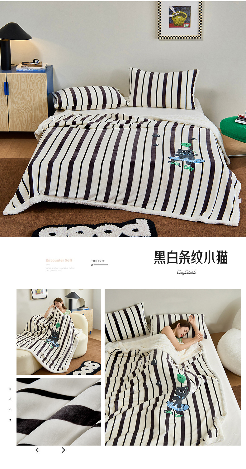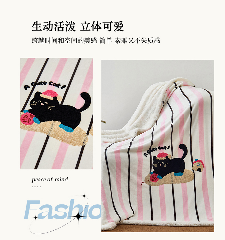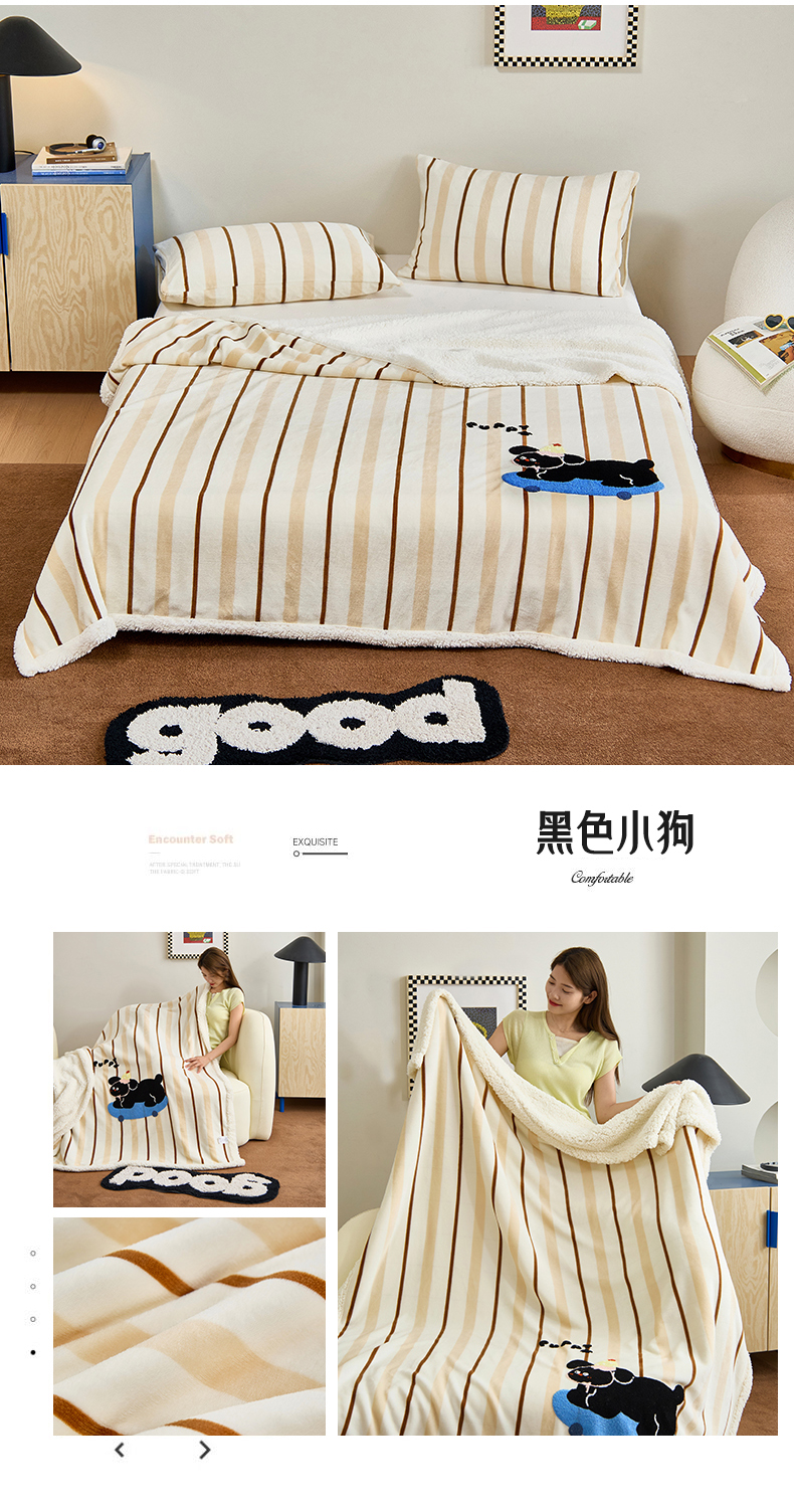 商品名称:呗旺鹿 2025新款高克重羊羔绒牛奶绒毛巾绣双层毯 兔子