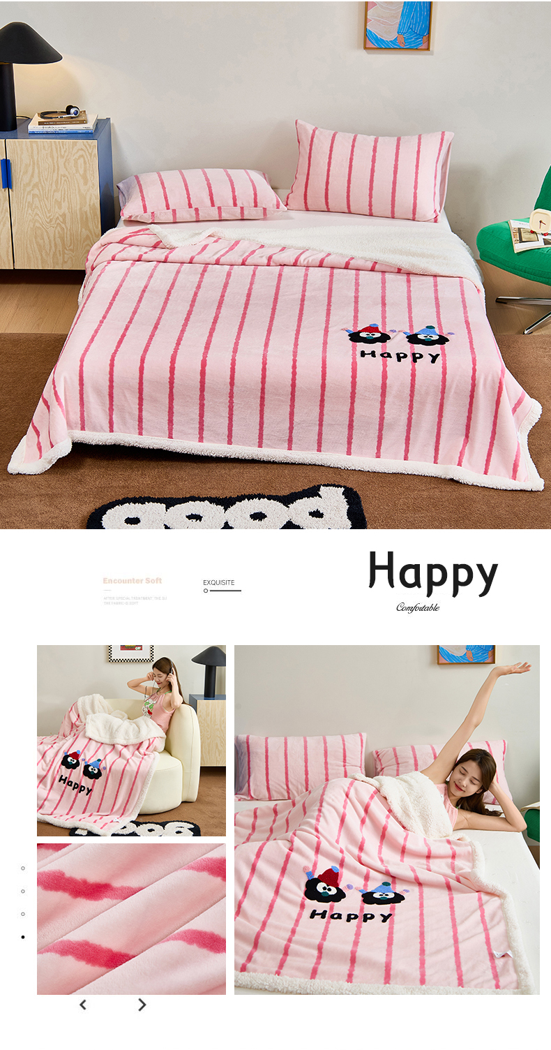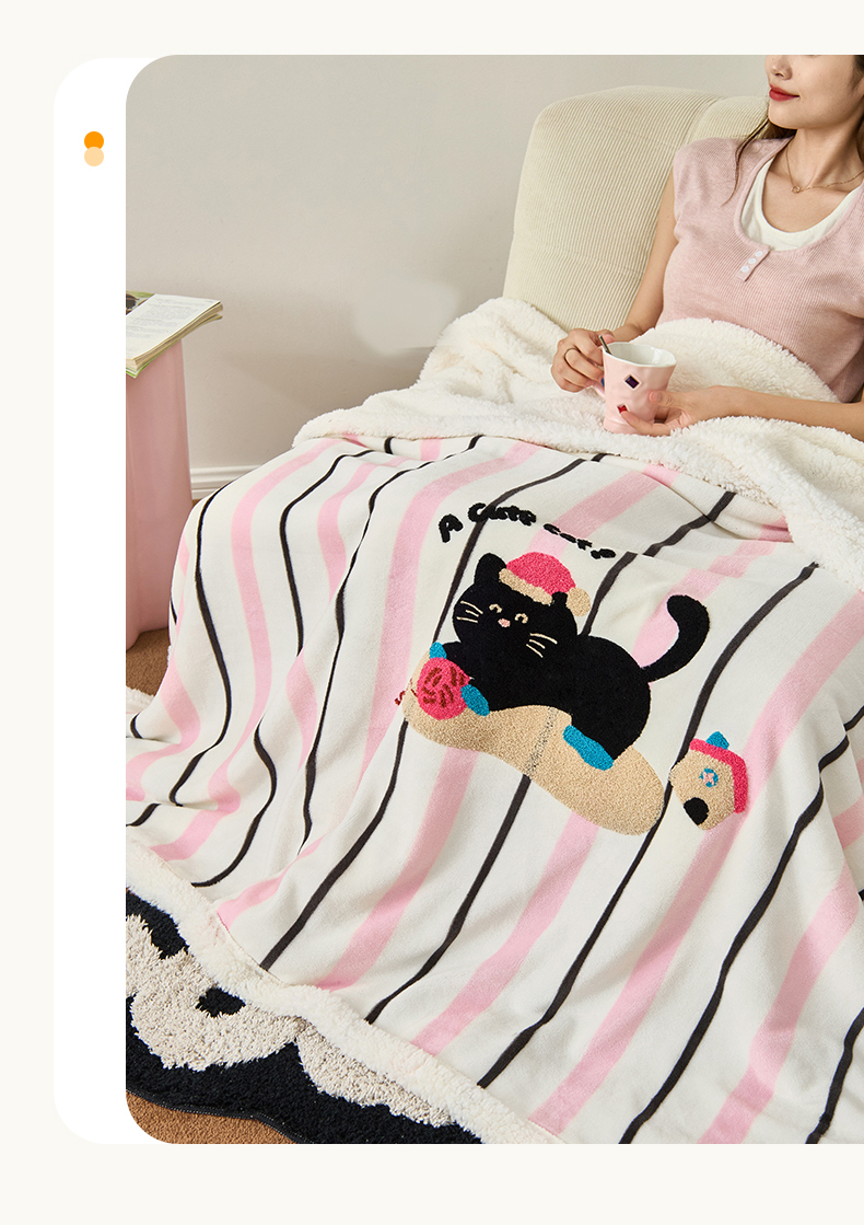 呗旺鹿 2025新款高克重羊羔绒牛奶绒毛巾绣双层毯 兔子