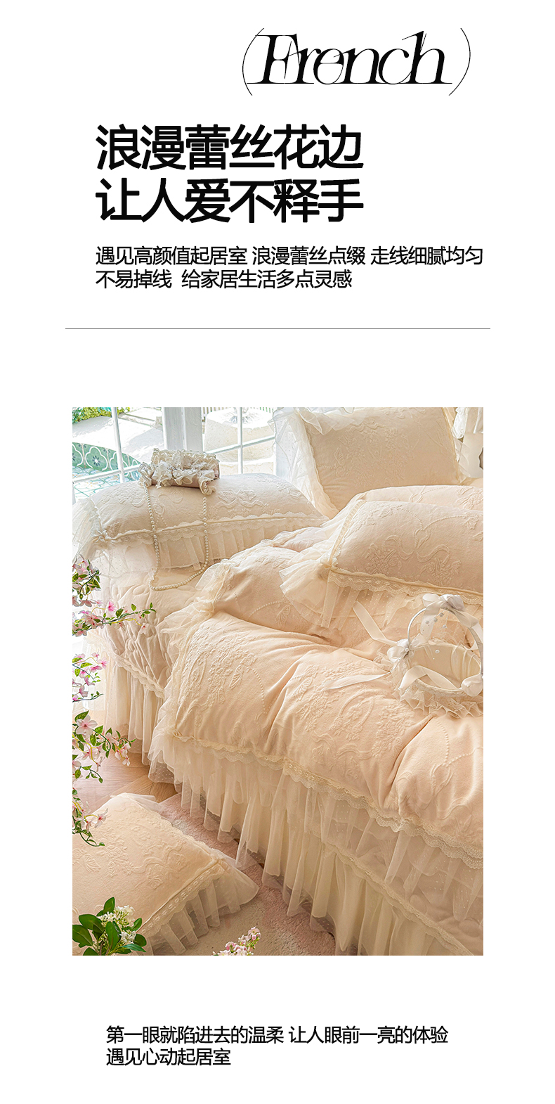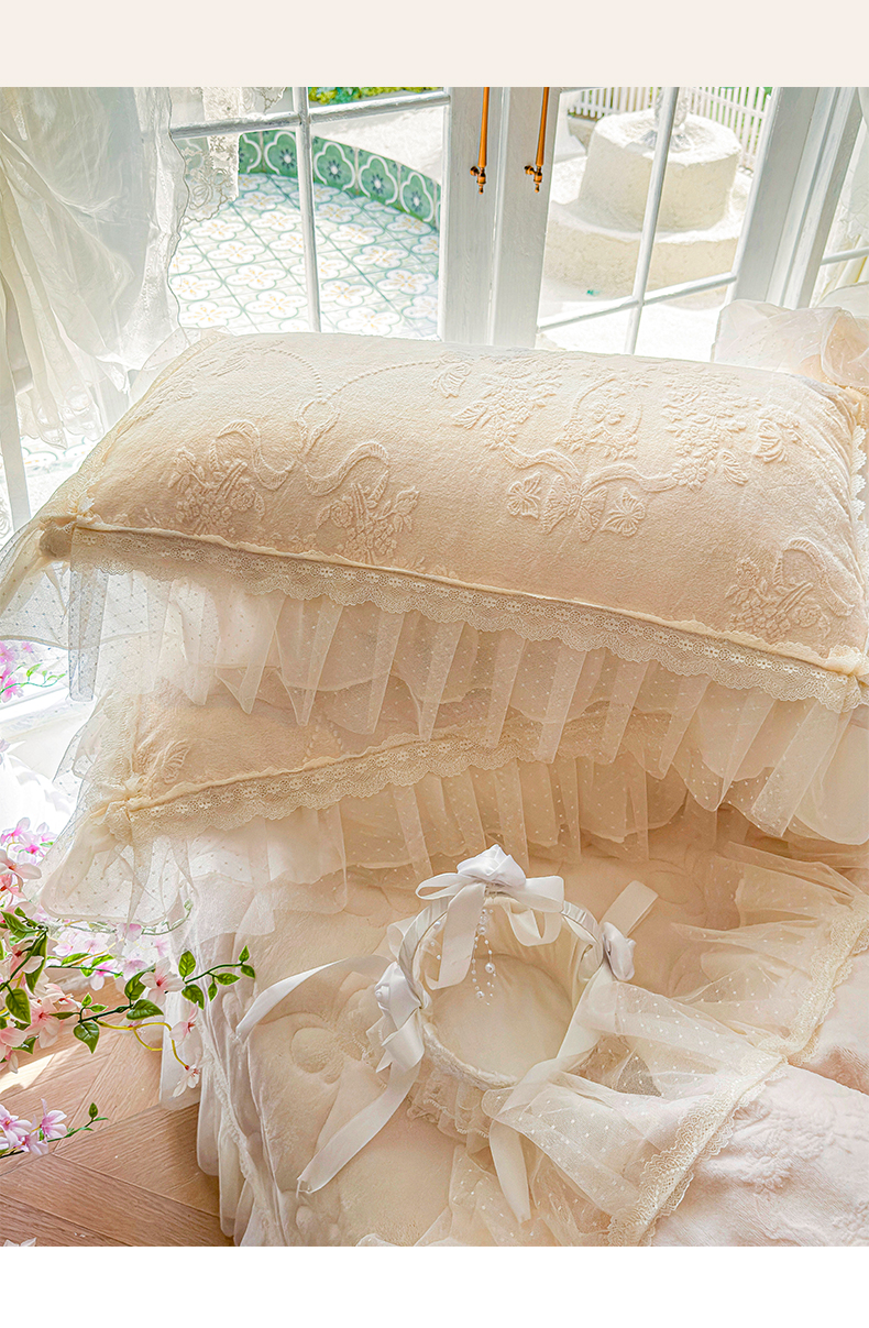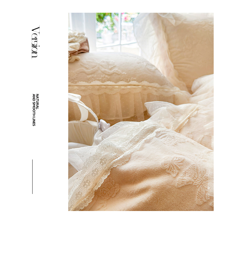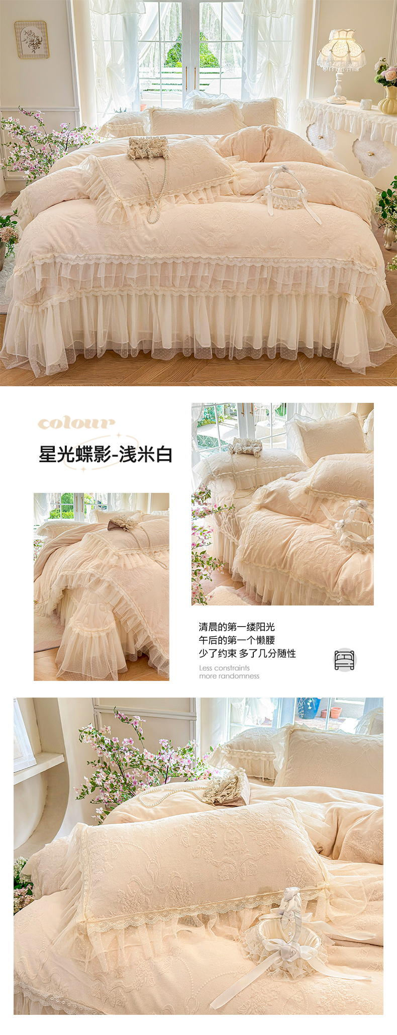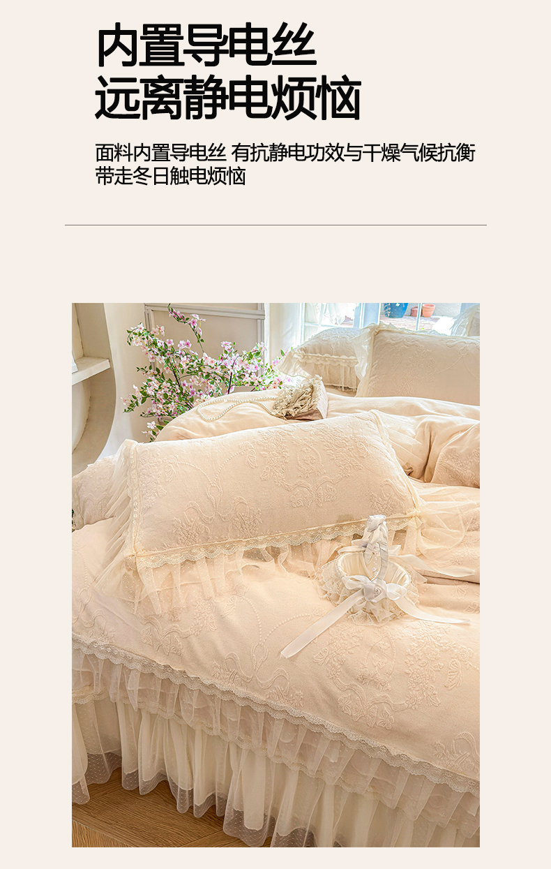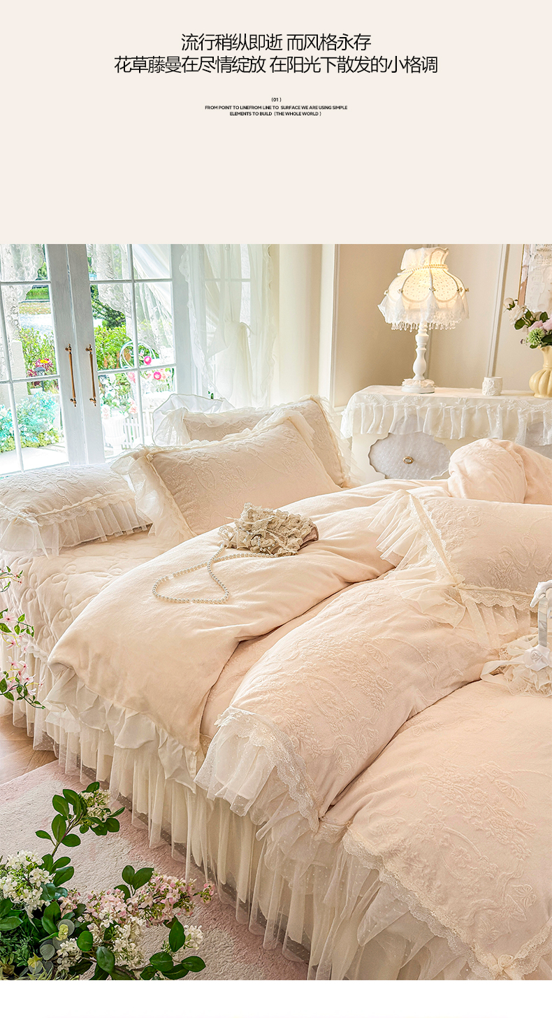 商品名称:虹星家纺 2025新款法式雕花牛奶绒花边床盖四件套-星光碟影 星光蝶影-浅米白