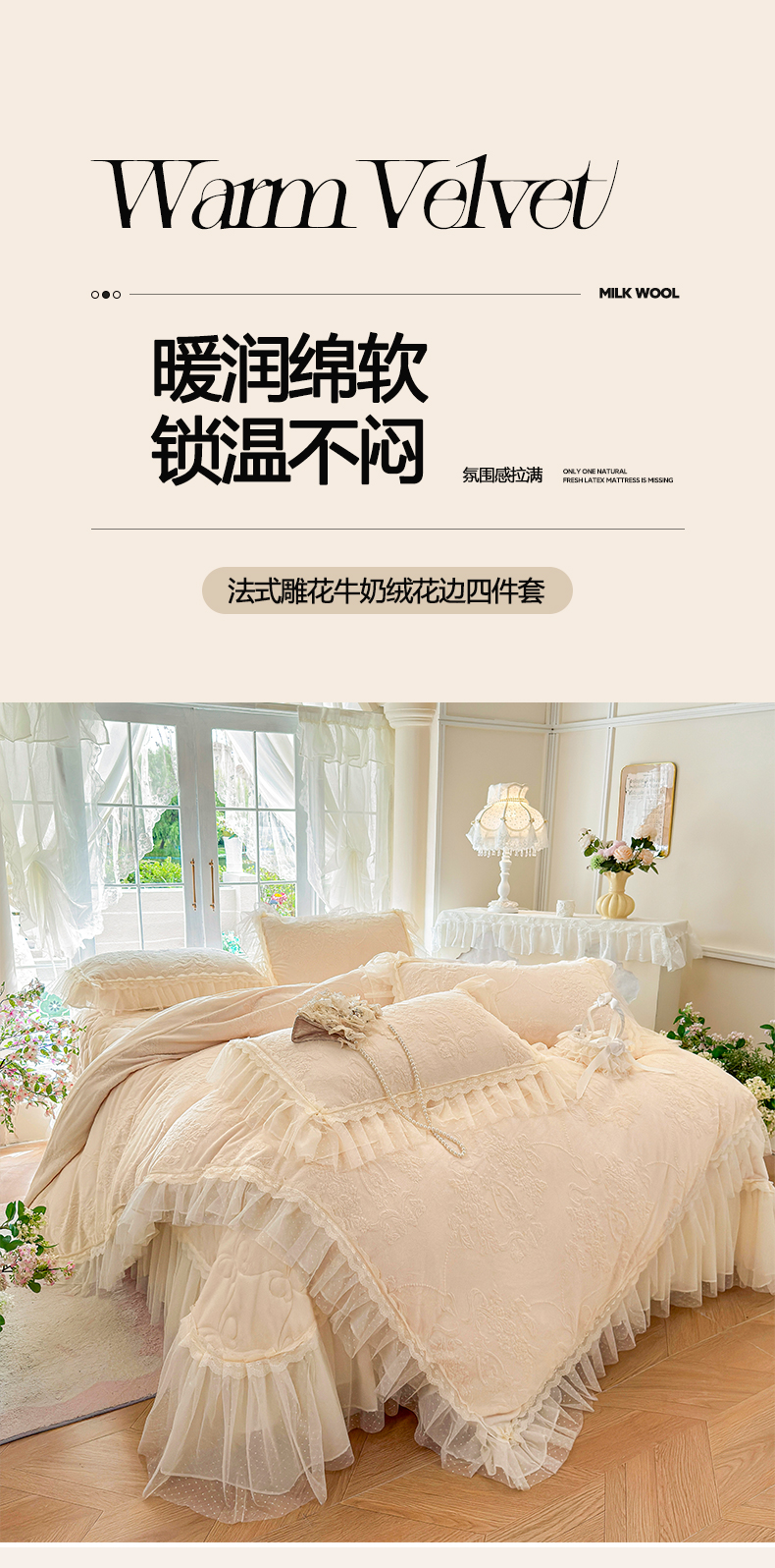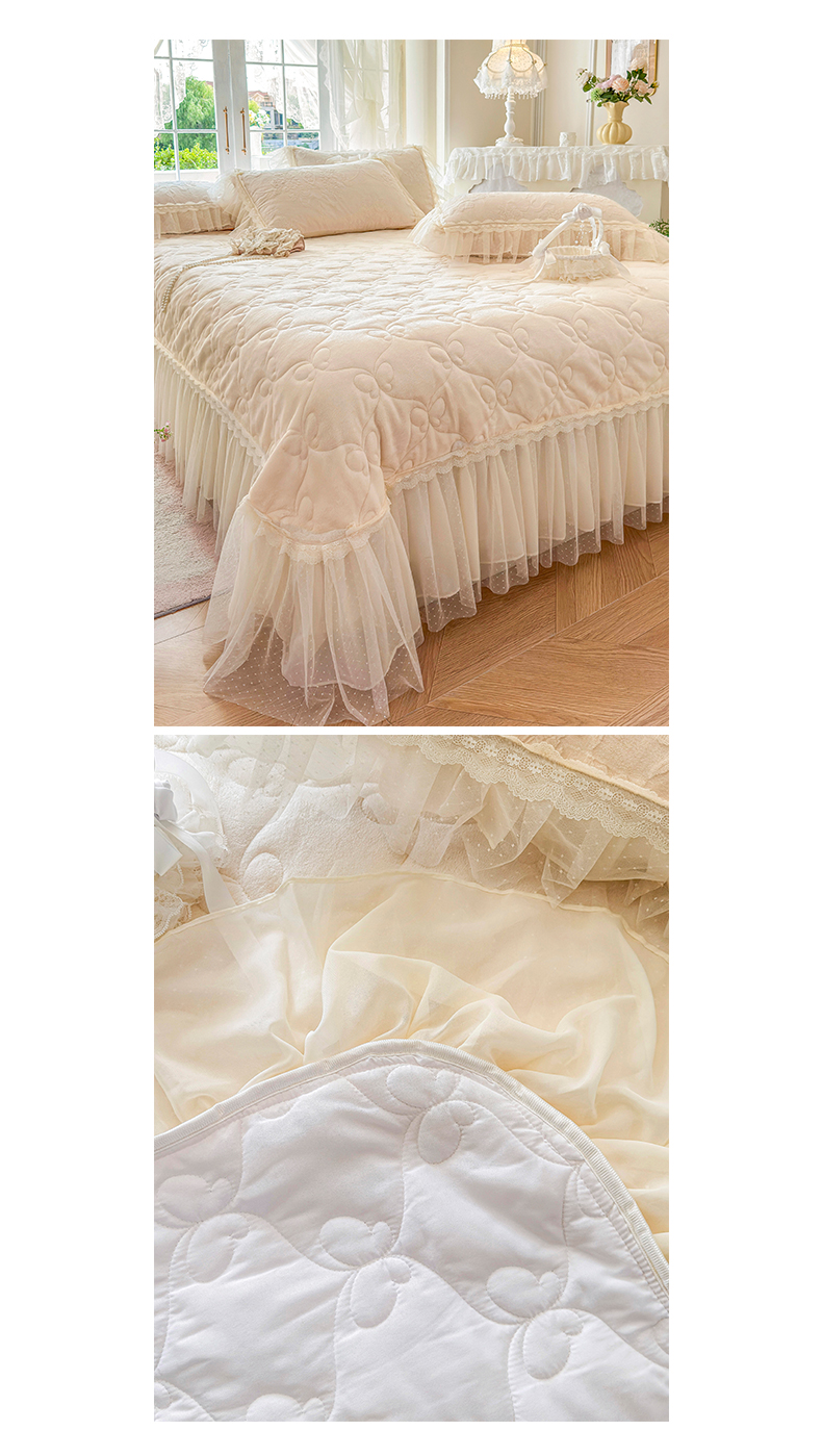 虹星家纺 2025新款法式雕花牛奶绒花边床盖四件套-星光碟影 星光蝶影-浅米白