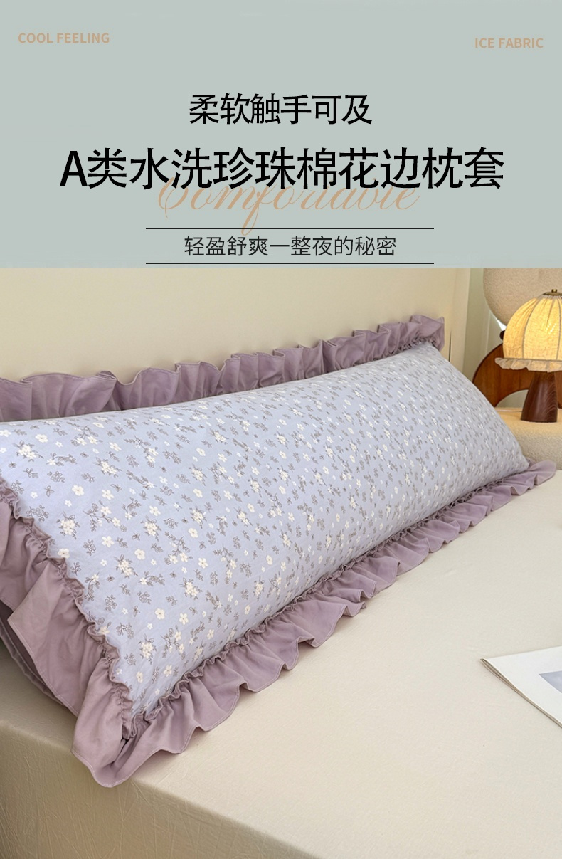 商品名称:圣比熊 2025新款水洗珍珠棉花边枕套加长双人情侣1.8米枕芯内胆套1.5m枕头套 花未眠-紫