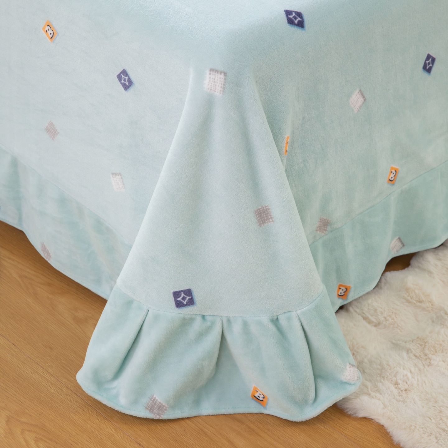 商品名称:优姿家纺 2025新款加厚全消光牛奶绒印花四件套 怦然心动-绿