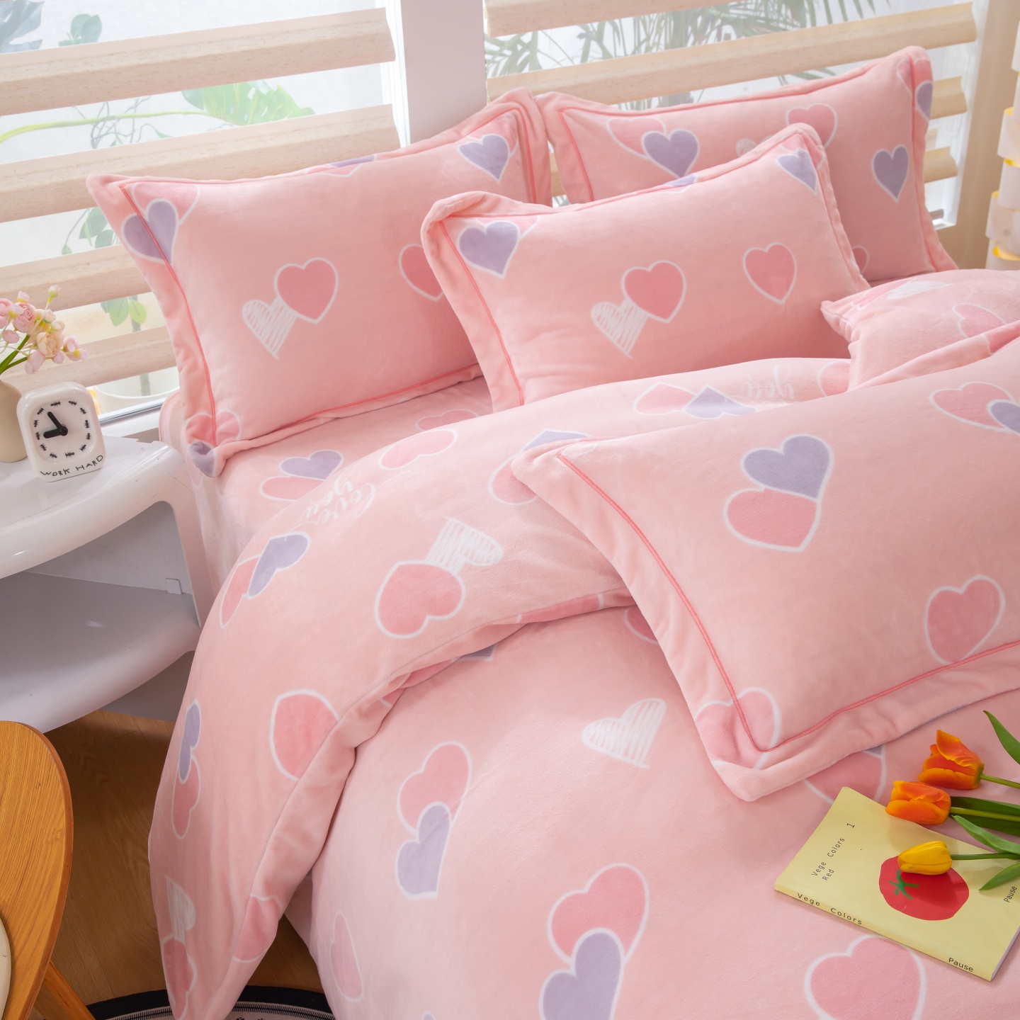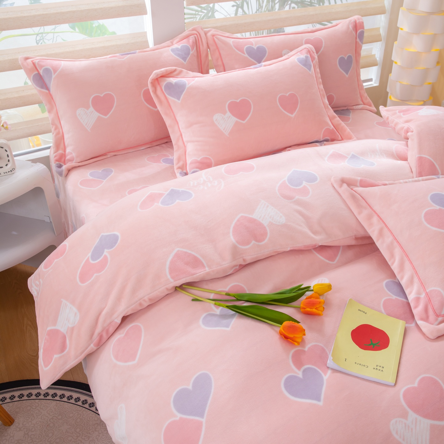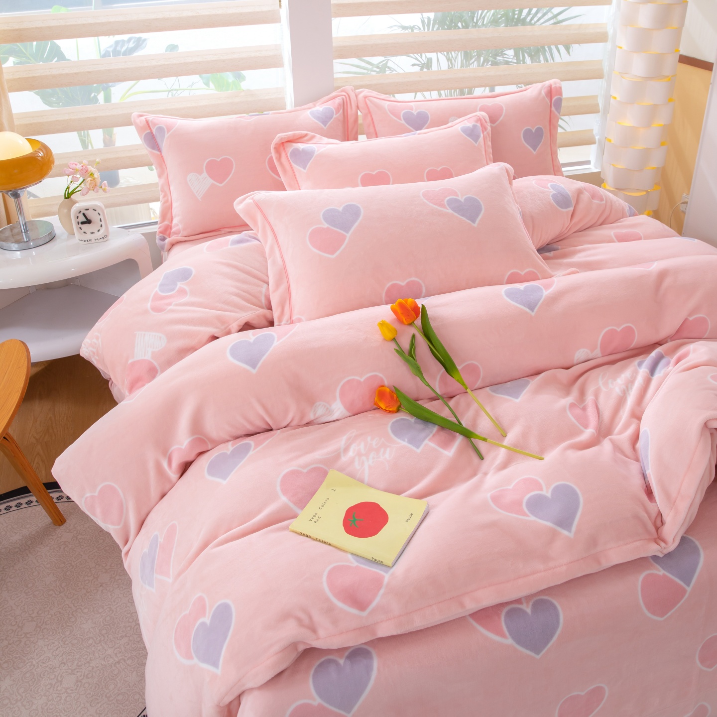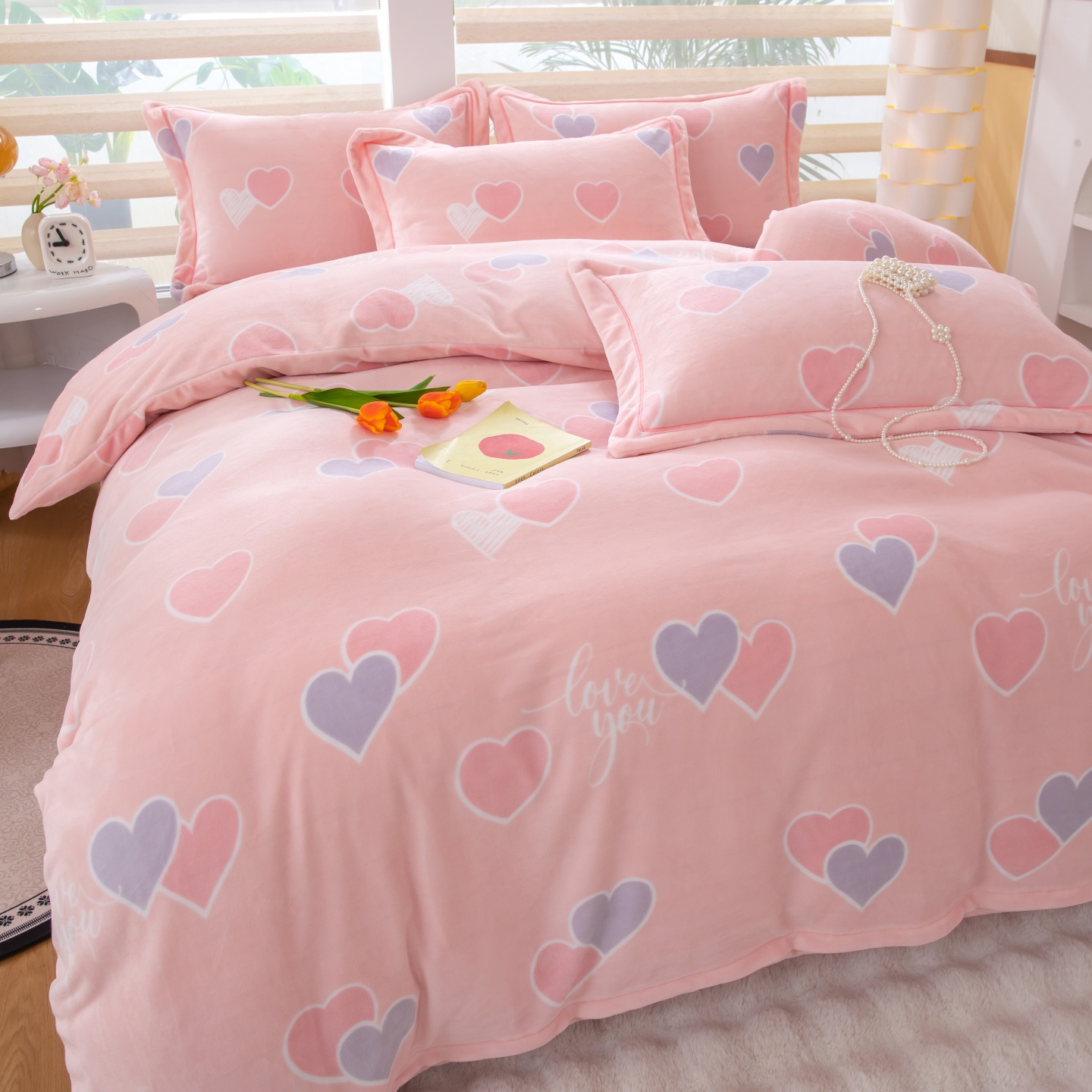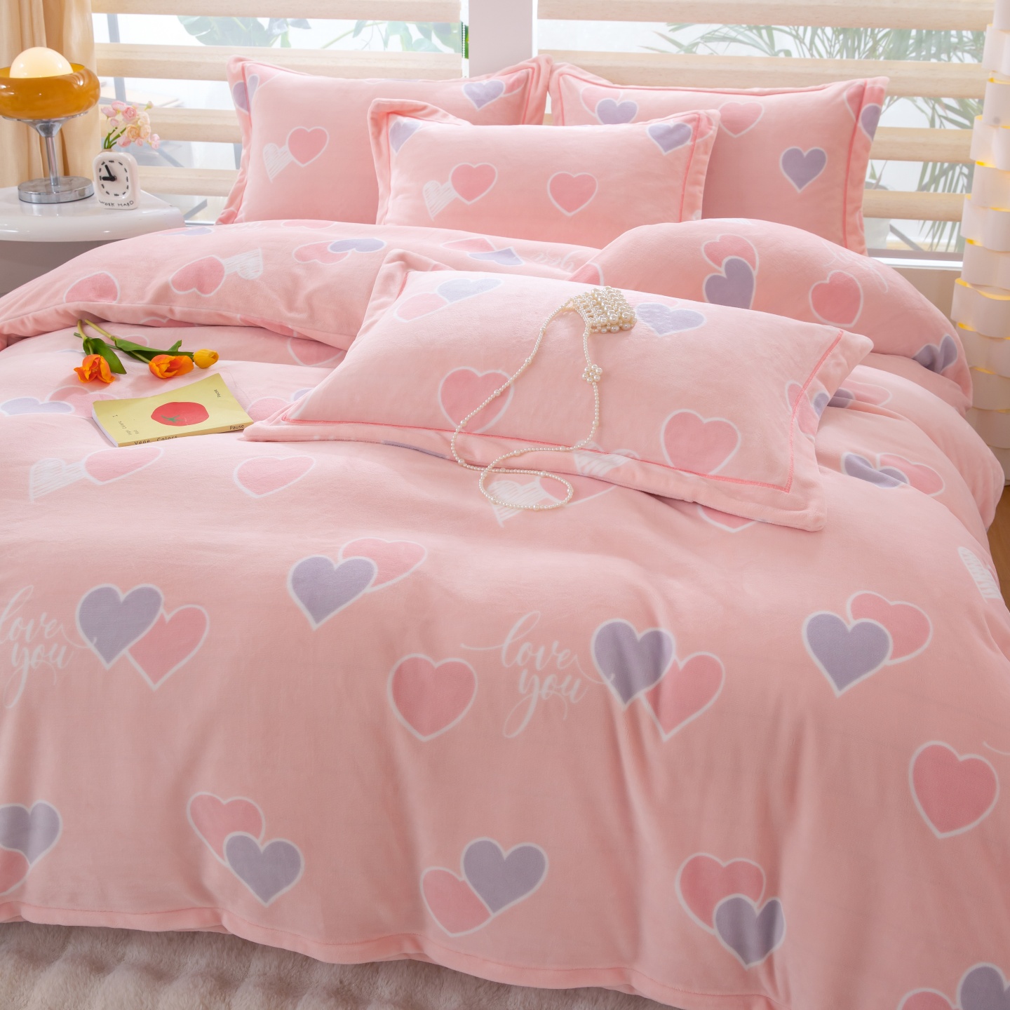商品名称:优姿家纺 2025新款加厚全消光牛奶绒印花四件套 心心相恋