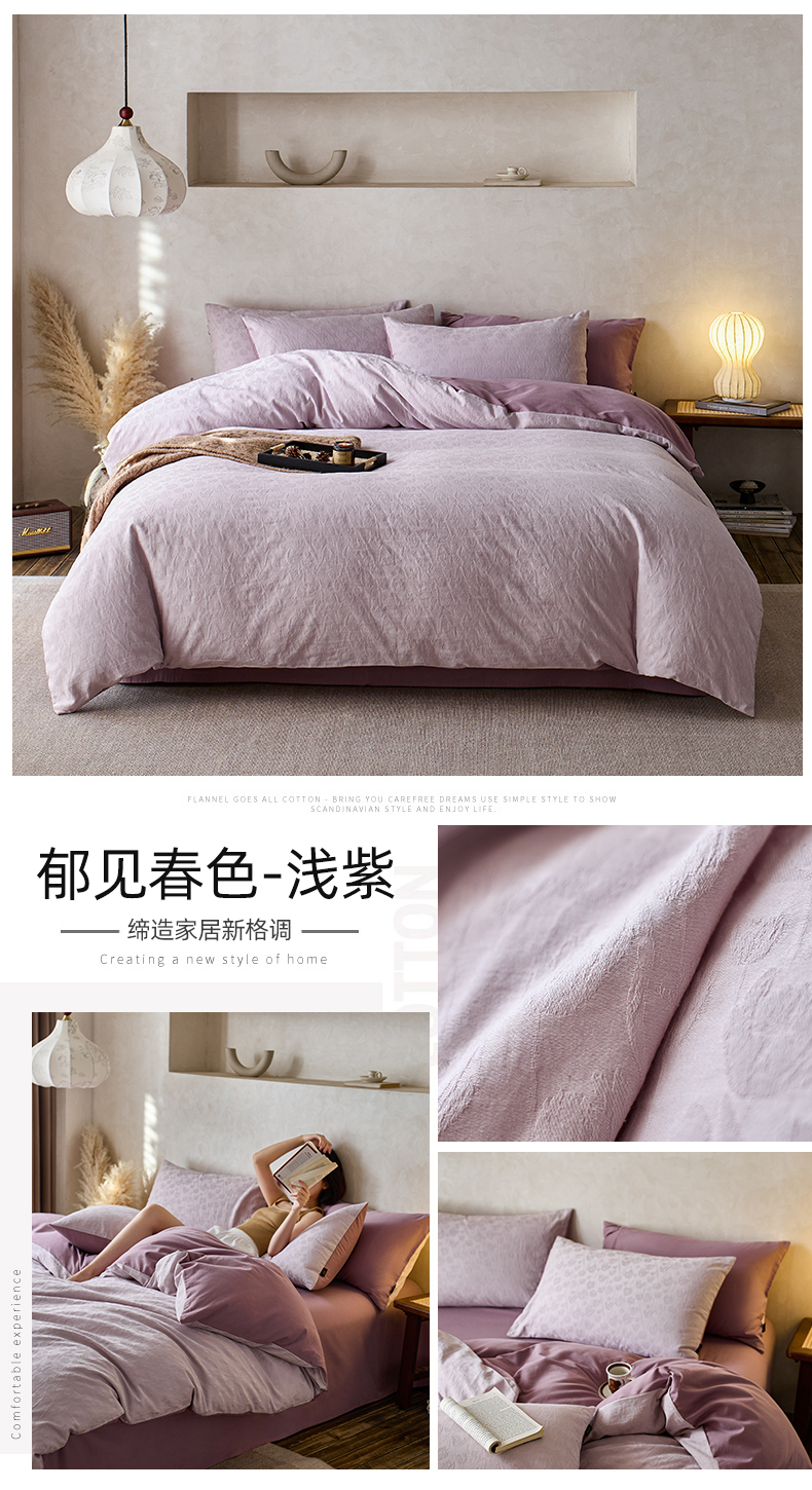 当前位置: 91家纺网 > 商品网购 > 床品套件 > 四件套 > 普通磨毛四件套 > 禾时 2025新款60s轻奢提花磨毛四件套-郁见春色 郁见春色-浅紫