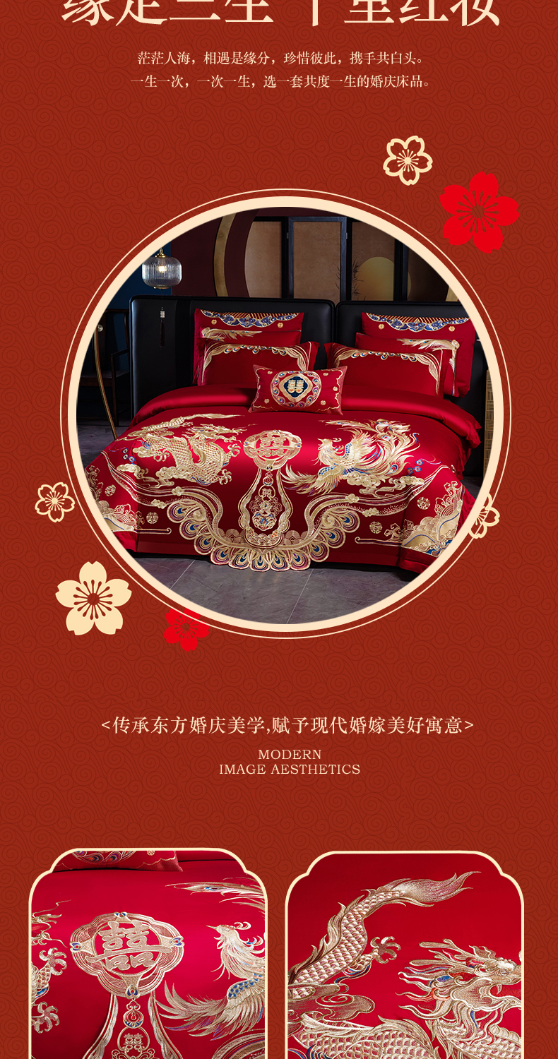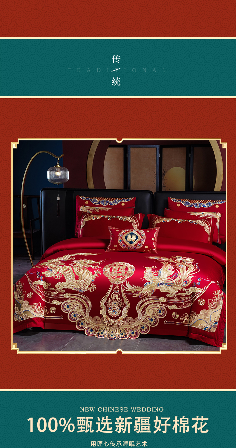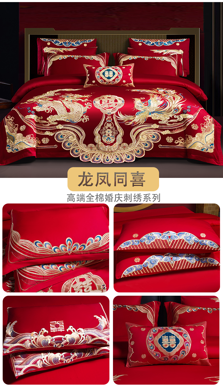 当前位置: 91家纺网 > 商品网购 > 床品套件 > 四件套 > 婚庆四件套 > 用心 2025新款婚庆全棉刺绣四件套多件套系列龙凤同喜