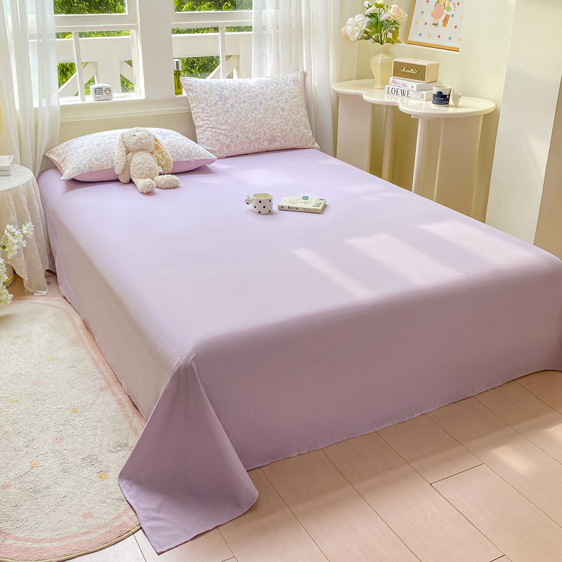(总)朵朵家纺 2025新款云感提花双层纱纯色单床单被单(可定做尺寸),卡其,果绿,奶黄,浅灰,雾蓝,香芋紫,樱花粉