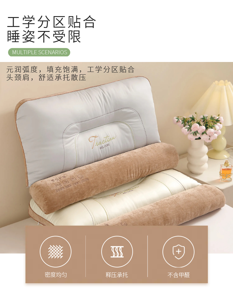 商品名称:晚儿 2025新款牵引护颈枕枕头枕芯 米白