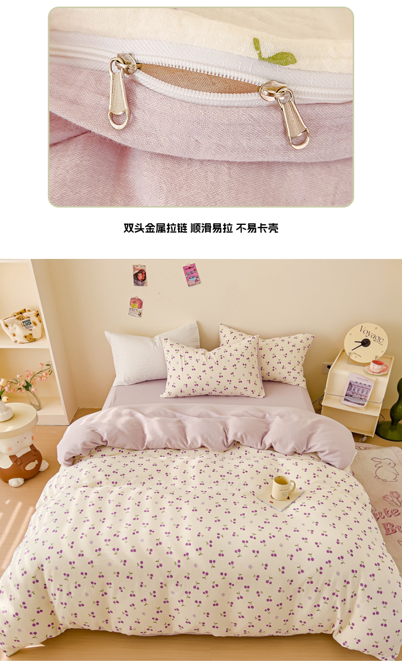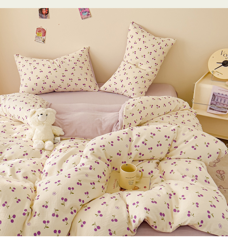 木楌家居 2025春夏新品全棉A类皱皱纱印花四件套 樱桃