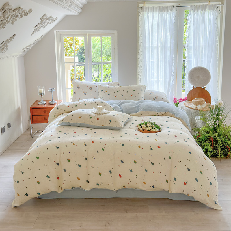 木楌 2025新款全棉A类皱皱纱印花四件套 小南国,小南国