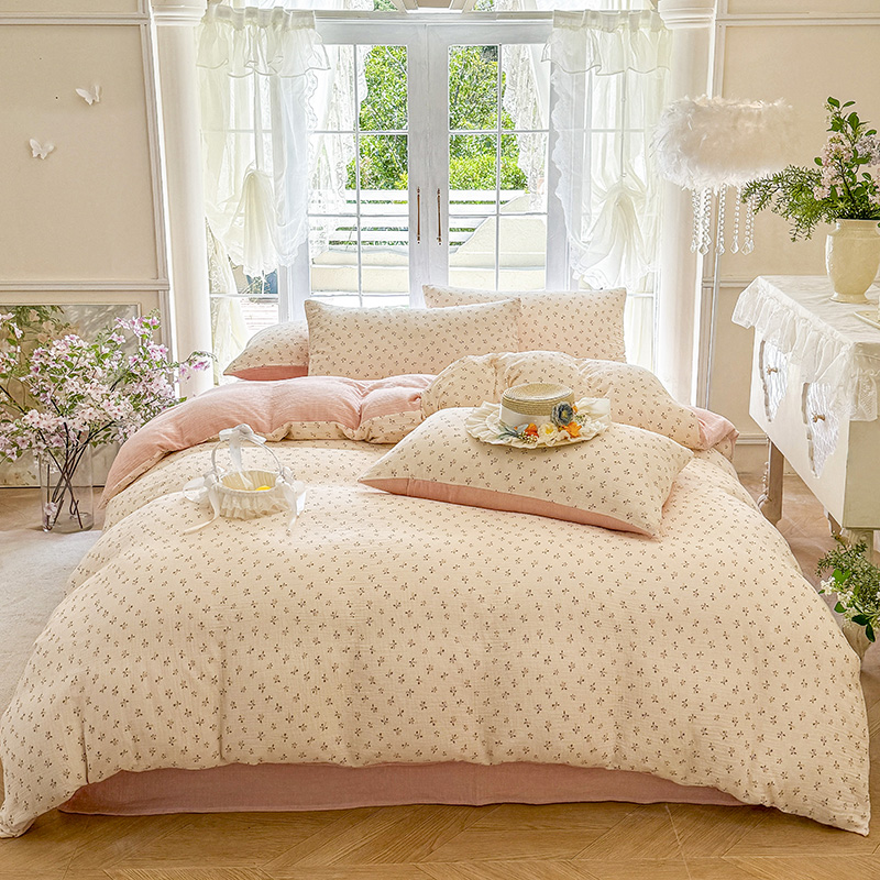 木楌 2025新款全棉A类皱皱纱印花四件套 春泥,春泥