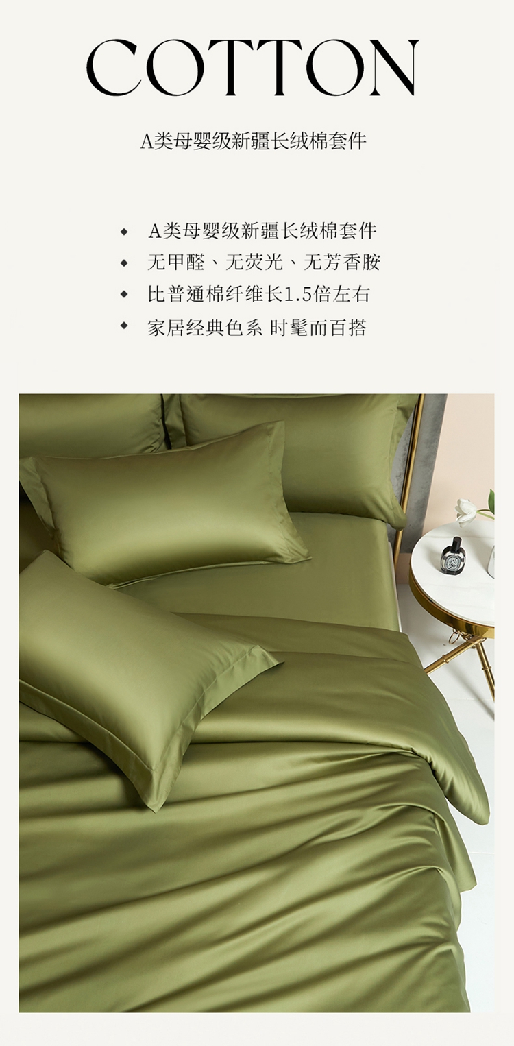 当前位置: 91家纺网 > 商品网购 > 床品套件 > 四件套 > 长绒棉四件套 > 柔觉家纺 2025新款100支长绒棉A类纯色双拼素色全棉四件套 香奈绿