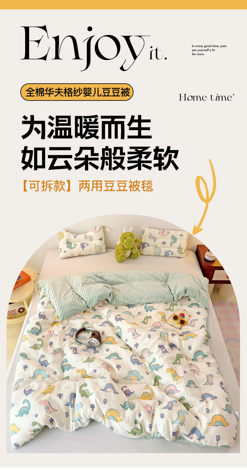• 91家纺网 家纺一手货源 找家纺 十九色 2025新款婴幼儿安抚豆豆被全棉华夫格豆豆被一体款+可拆款(可机洗) 一体款-多彩恐龙
