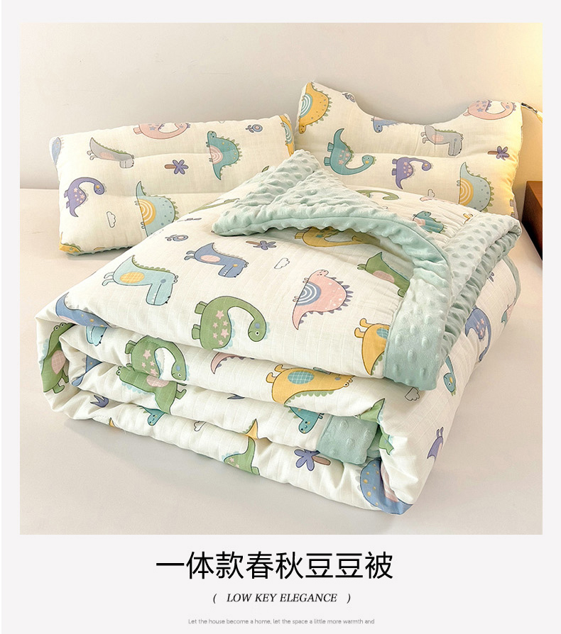 十九色 2025新款婴幼儿安抚豆豆被全棉华夫格豆豆被一体款+可拆款(可机洗) 一体款-多彩恐龙