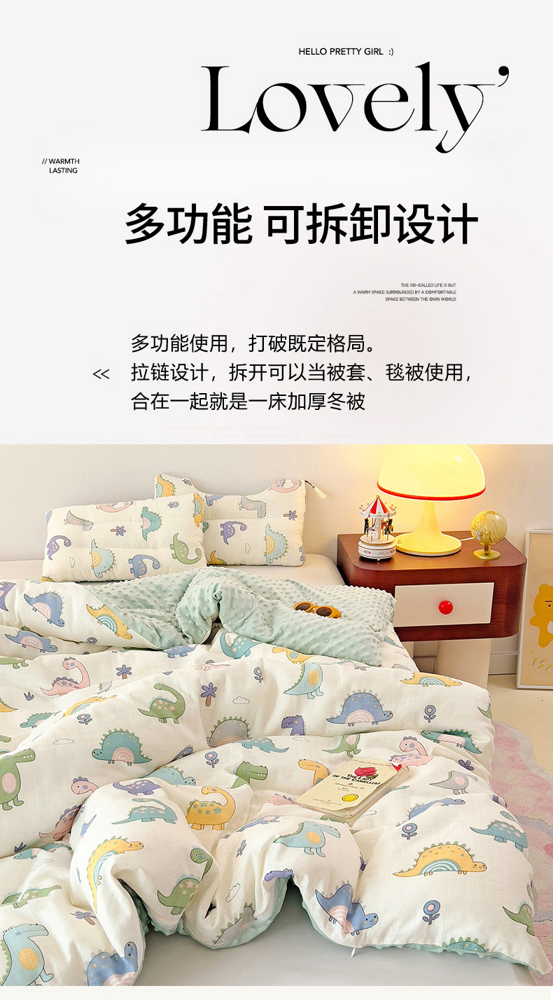 • 91家纺网 家纺一手货源 找家纺 (总)十九色 2025新款亲肤舒适活套可拆全棉豆豆绒儿童睡袋防踢被,组合图仅供参考不可下单,玩具车,望远镜,挖掘机,幸运兔,内芯,度假狗,飞马,美味,好运满满,明细图