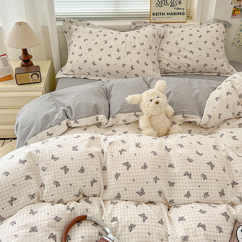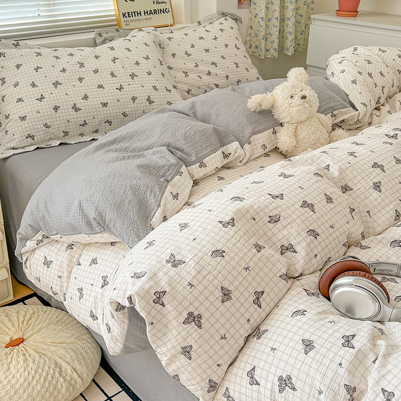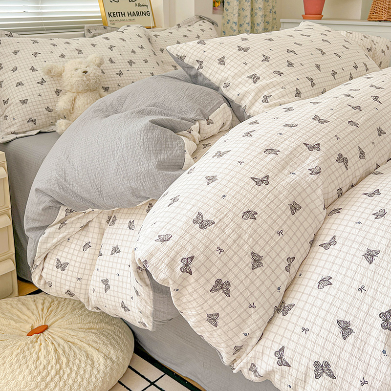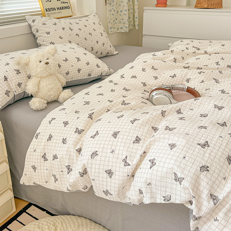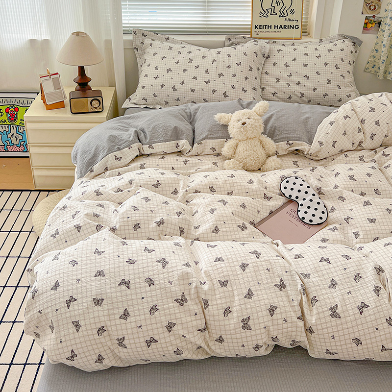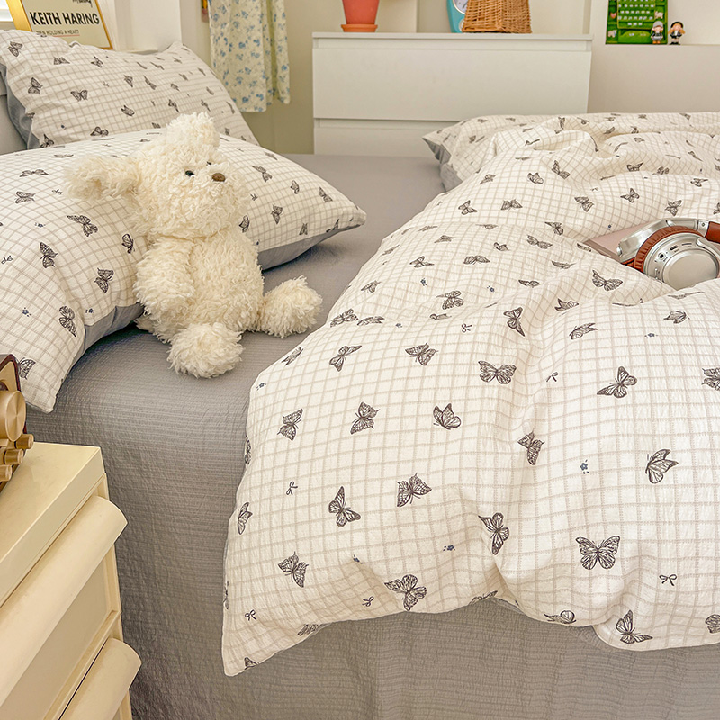 (总)一比一家纺 2026新款古法水洗仿棉云感纱A类四件套,知秋,白兰地,彩波波,草莓点点,格纹狗,嗨皮狗,赫莲娜,花千朵,花絮,酱果,蓝小格,莉莉安,梦幻灰,南瓜果果,葡萄,浅梦,森屿,疏影,甜心草莓,甜心喵,条纹狗,童趣,小黄花,小木马,小时光,小幸运,修修狗,薰衣草,灰樱桃,樱桃熊,鱼多多,组合图仅做展示不可下单