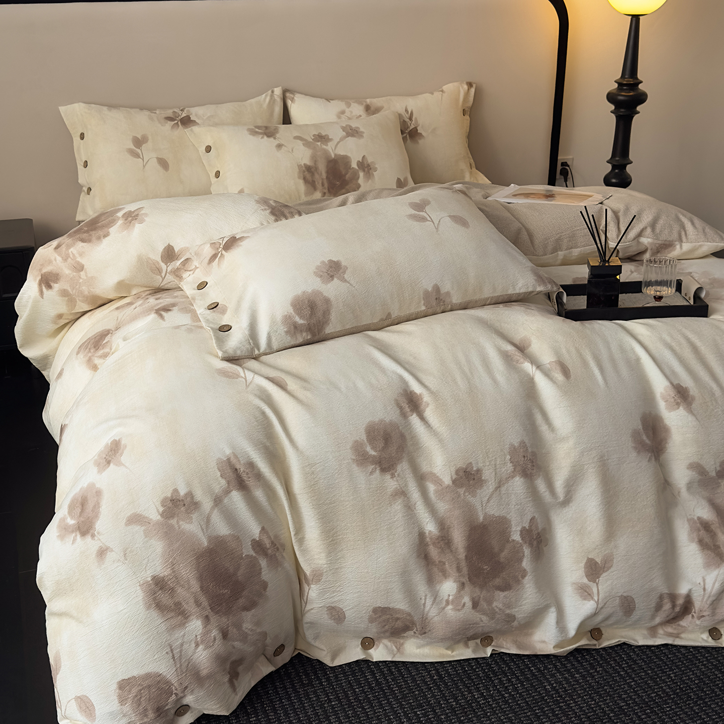 禧多家纺 2024新款亲肤舒适印花云纱棉豆豆被子被芯 花语,花语