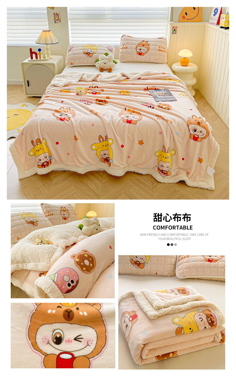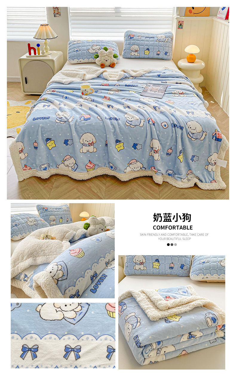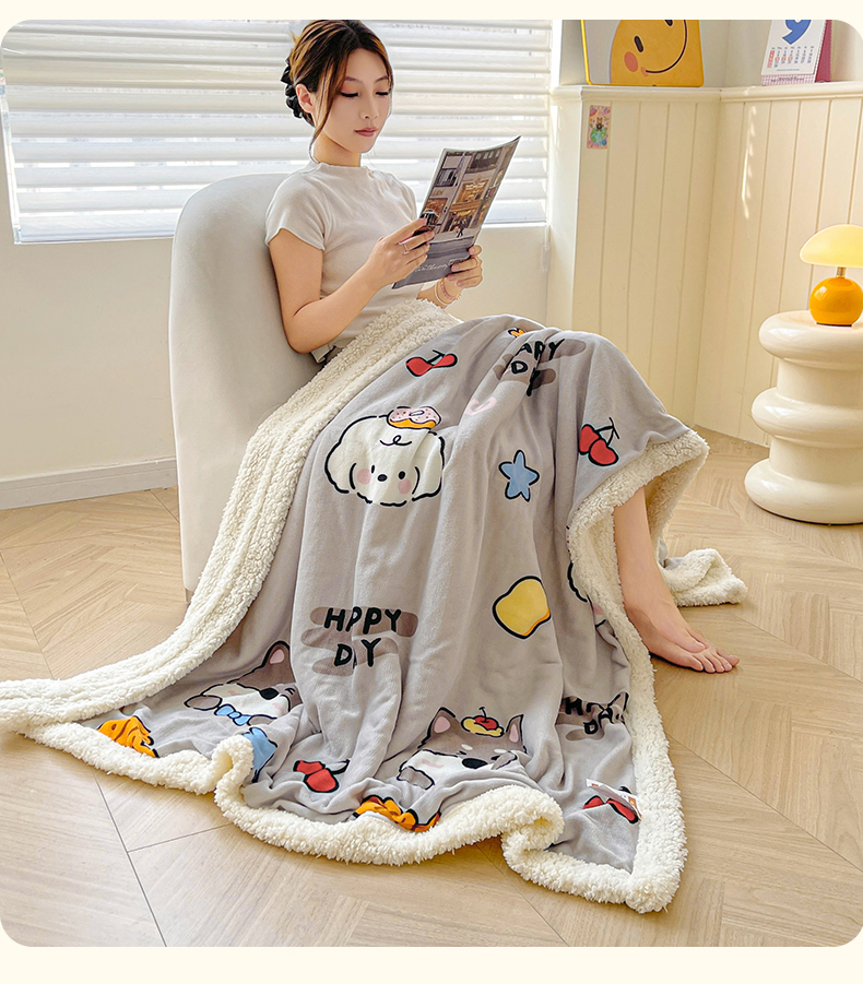 商品名称:雯豆家纺 2025新款双面暖绒多功能被套毯盖毯毯子 皮皮狗