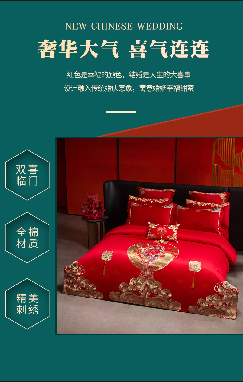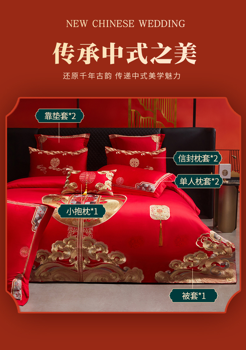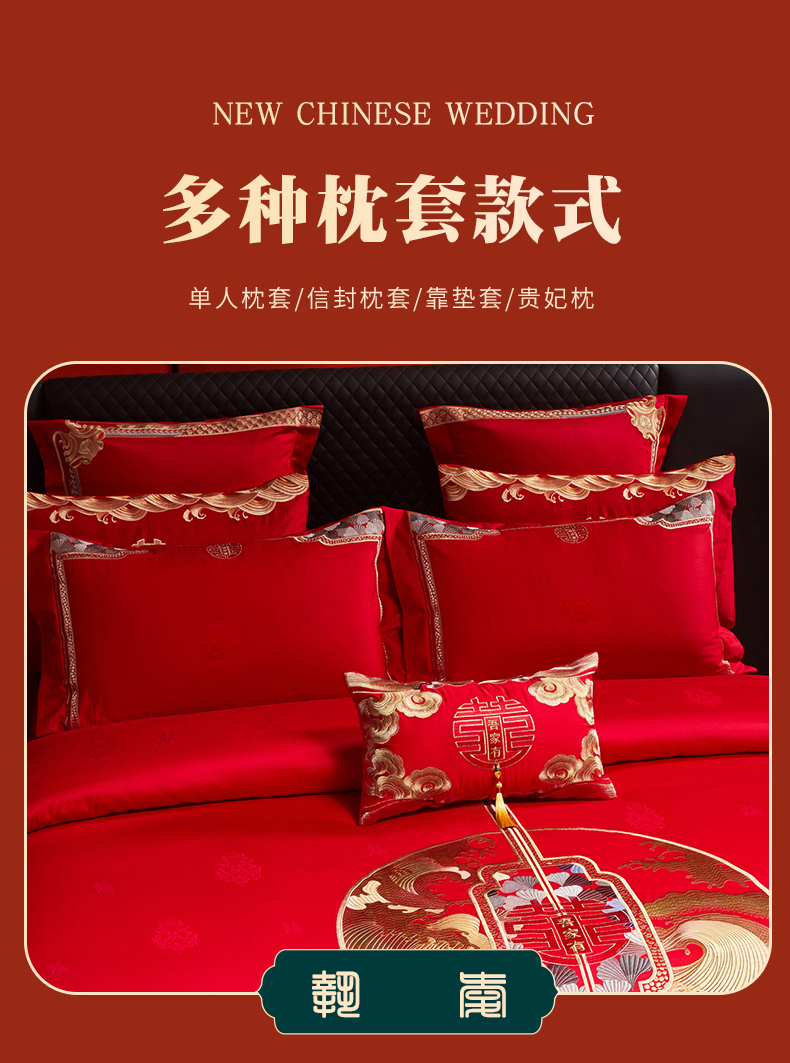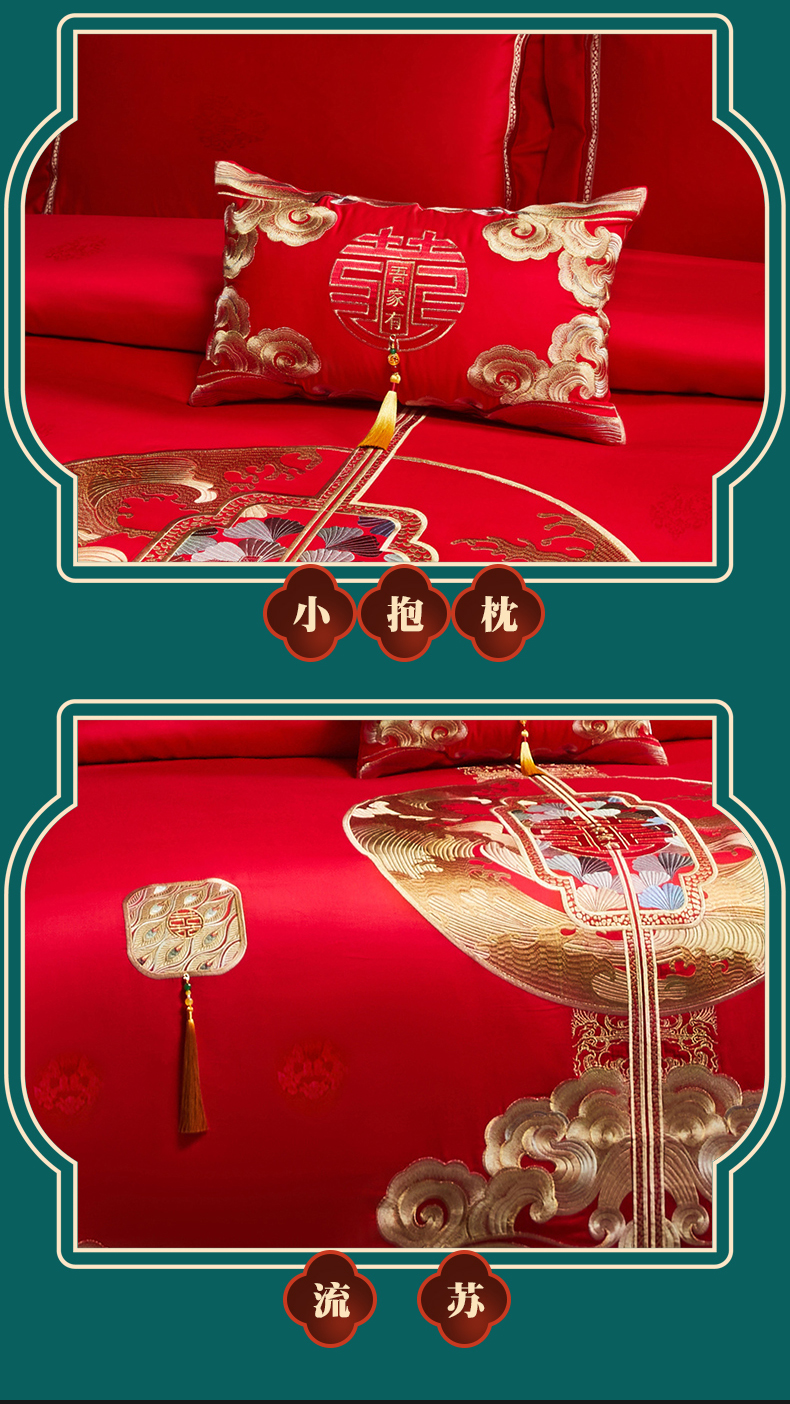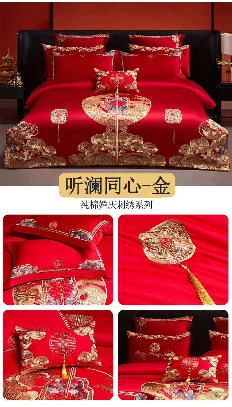 当前位置: 91家纺网 > 商品网购 > 床品套件 > 四件套 > 婚庆四件套 > 宏羽纺家纺 2025新款高支高密全棉提花新中式婚庆多件套 高支高密听澜同心-金