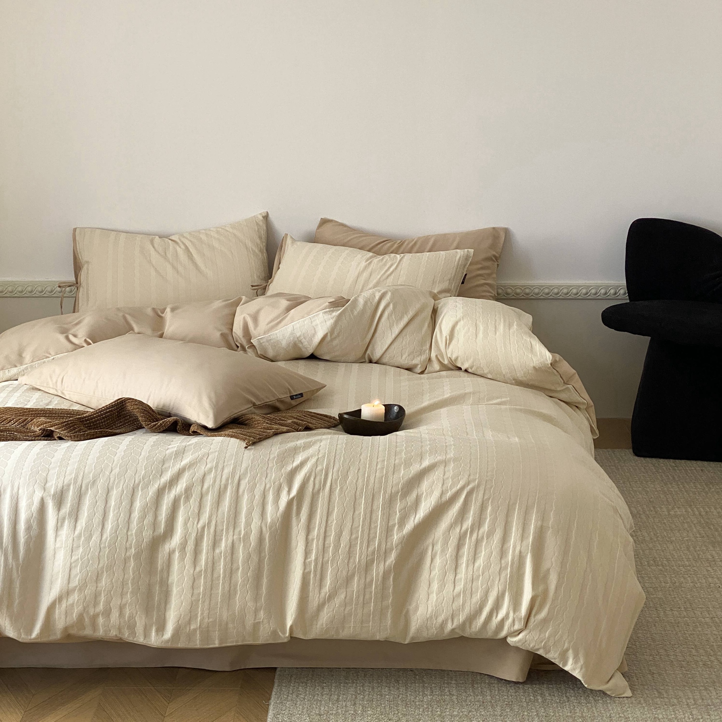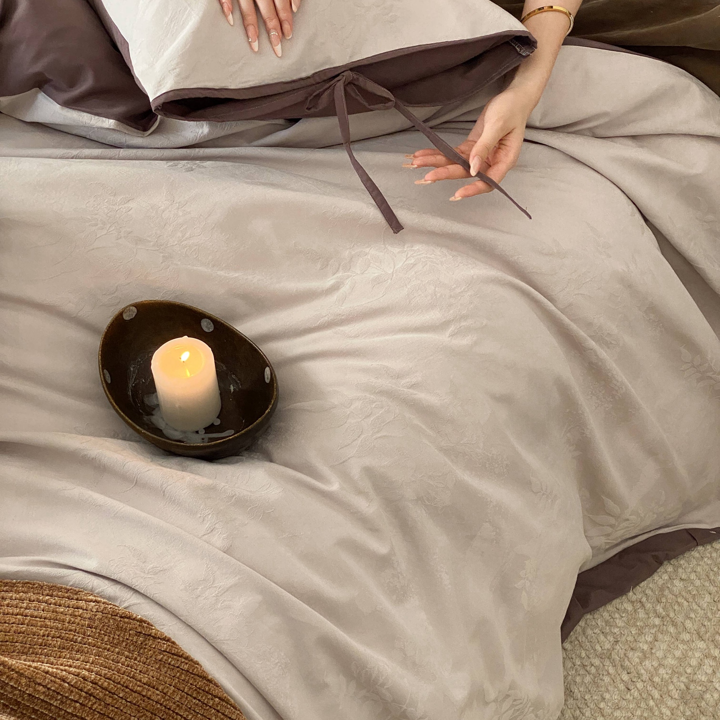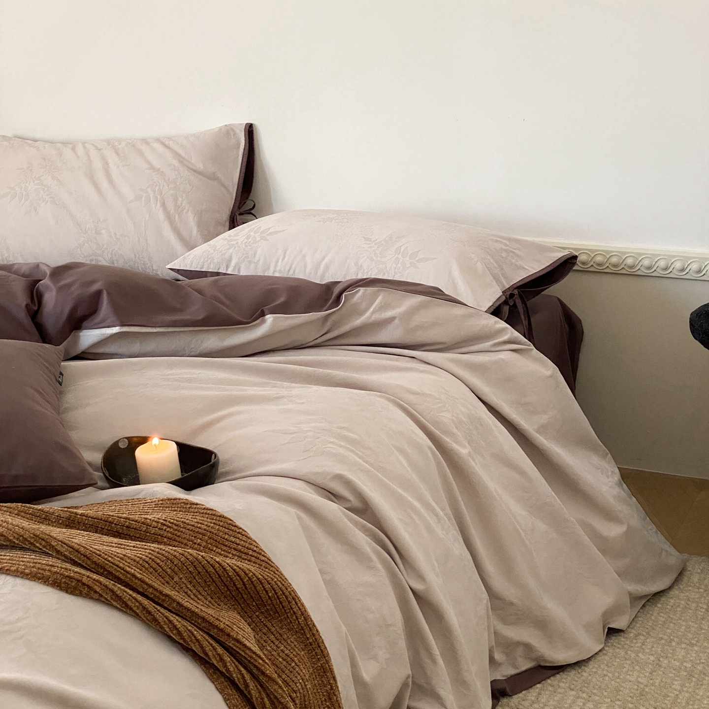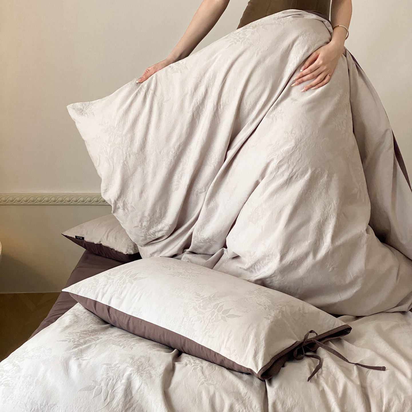 当前位置: 91家纺网 > 商品网购 > 床品套件 > 四件套 > 全棉普通四件套 > 玉宇阁家居 2025秋冬新品60s色织全棉磨毛大提花四件套-绑带款 绑带款-淡琉璃