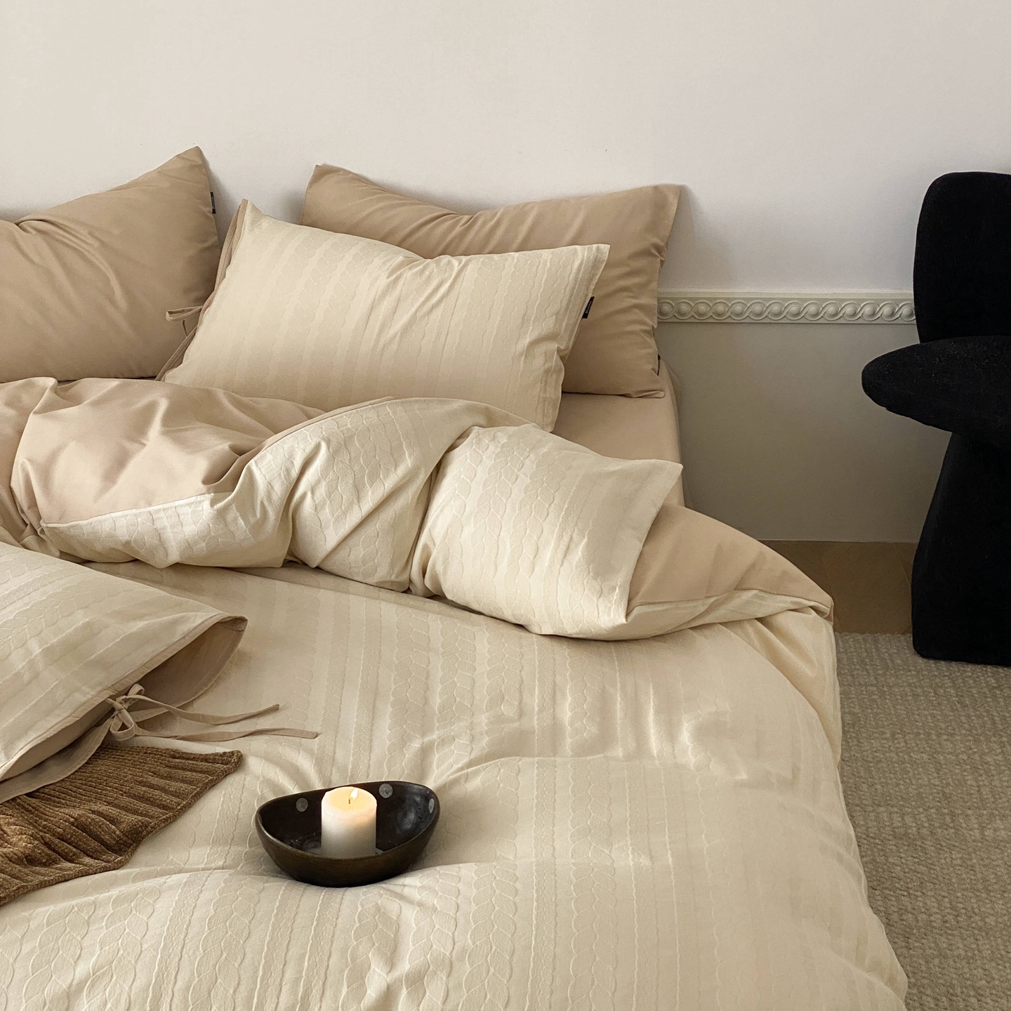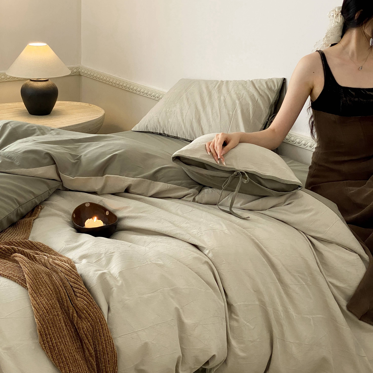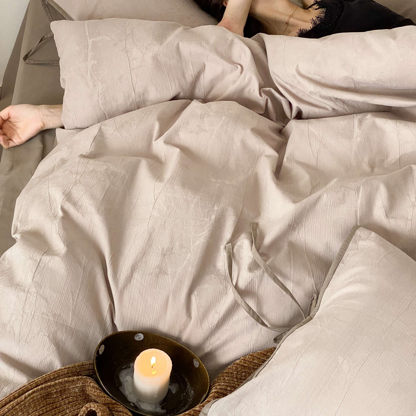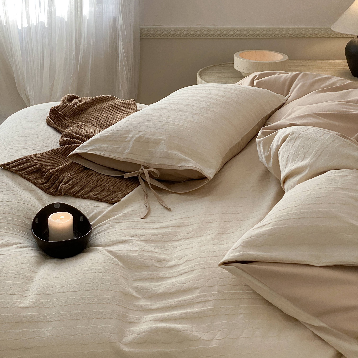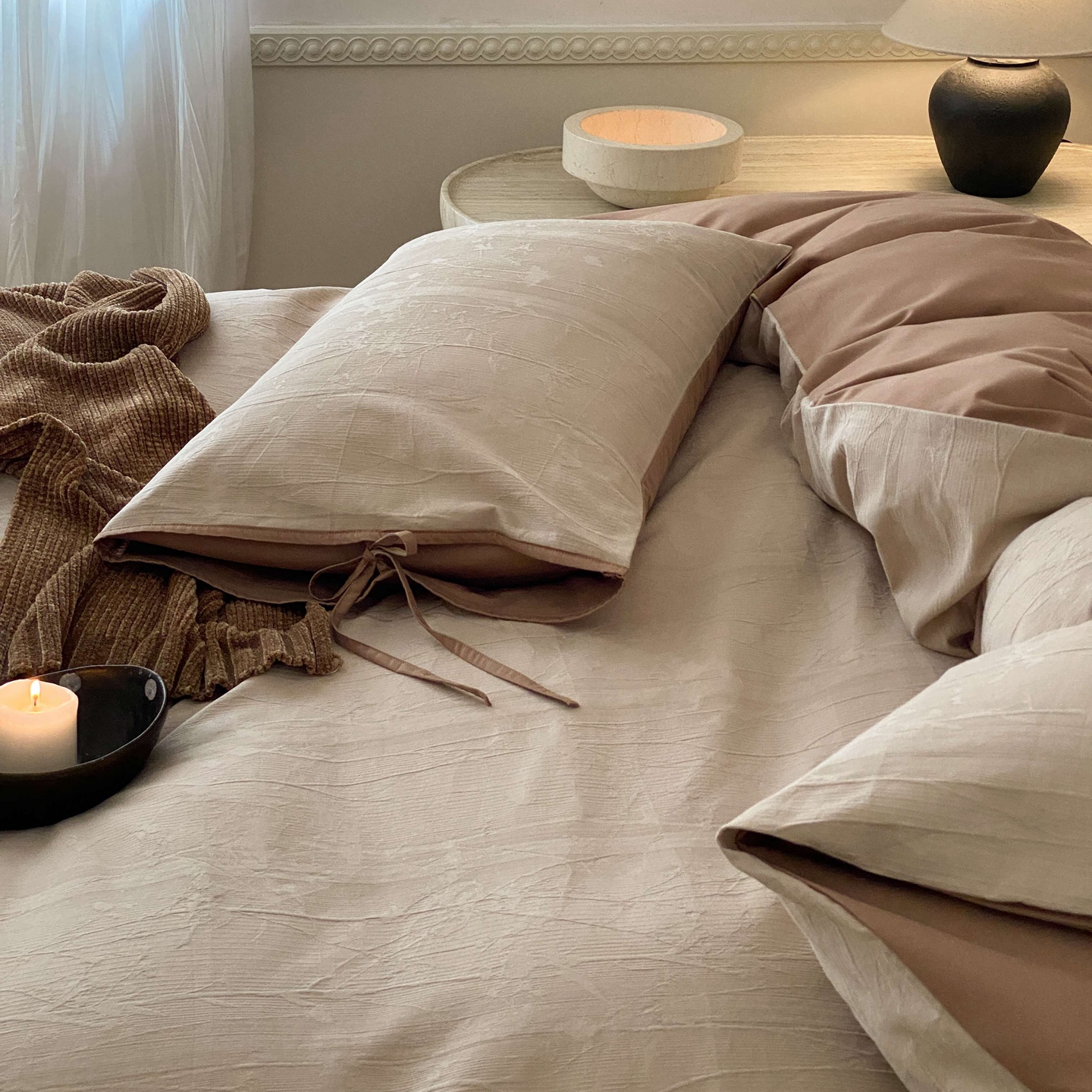 当前位置: 91家纺网 > 商品网购 > 床品套件 > 四件套 > 全棉普通四件套 > 玉宇阁家居 2025秋冬新品60s色织全棉磨毛大提花四件套-绑带款 绑带款-淡琉璃