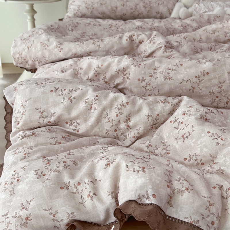 荣轩2025新款全棉双层纱镂空花边工艺款四件套(铺床版)秋意浓