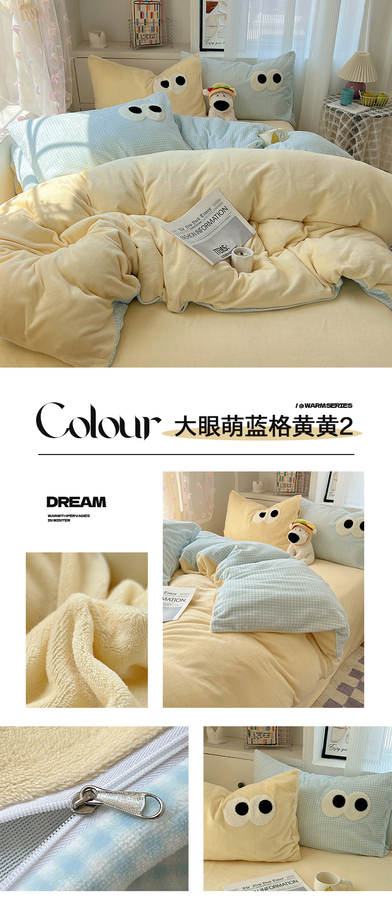 当前位置: 91家纺网 > 商品网购 > 床品套件 > 四件套 > 牛奶绒四件套 > 桃子家居 2025新款A类ins加厚毛巾绣大眼萌混搭撞色奶油格子牛奶绒系列四件套 绒毛巾绣-大眼萌芋泥奶盖