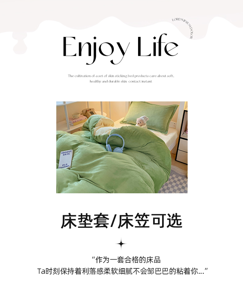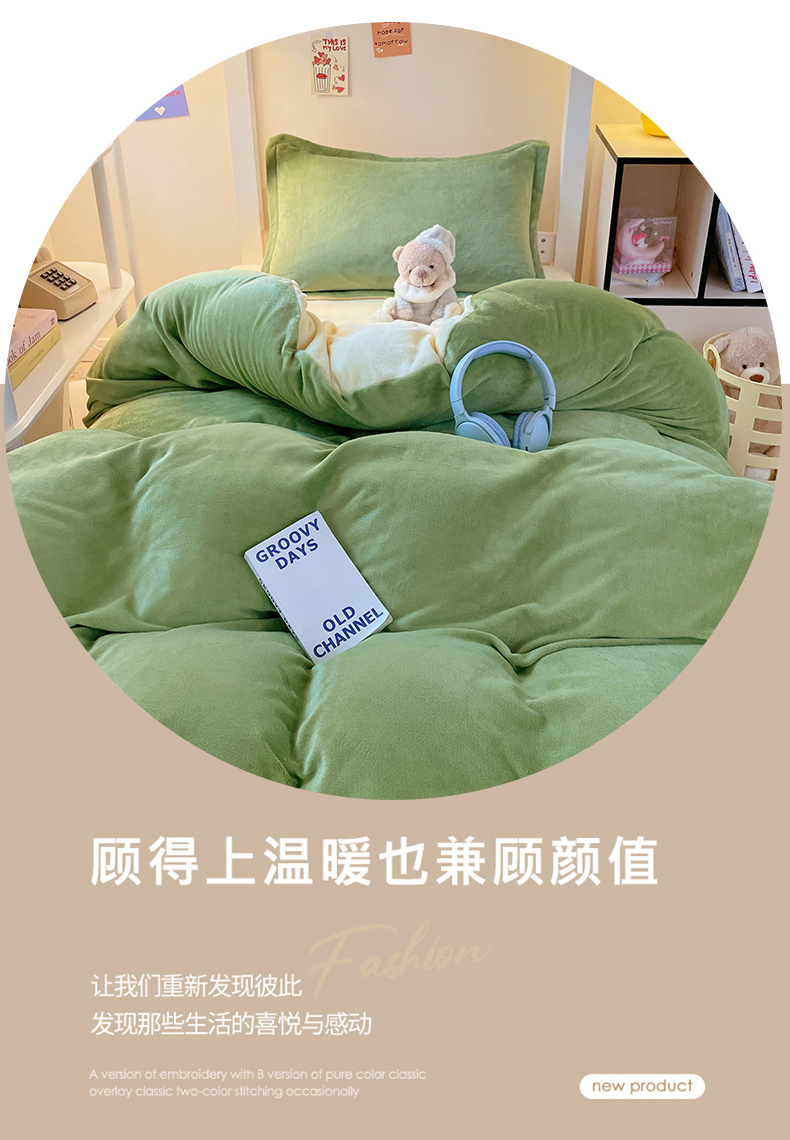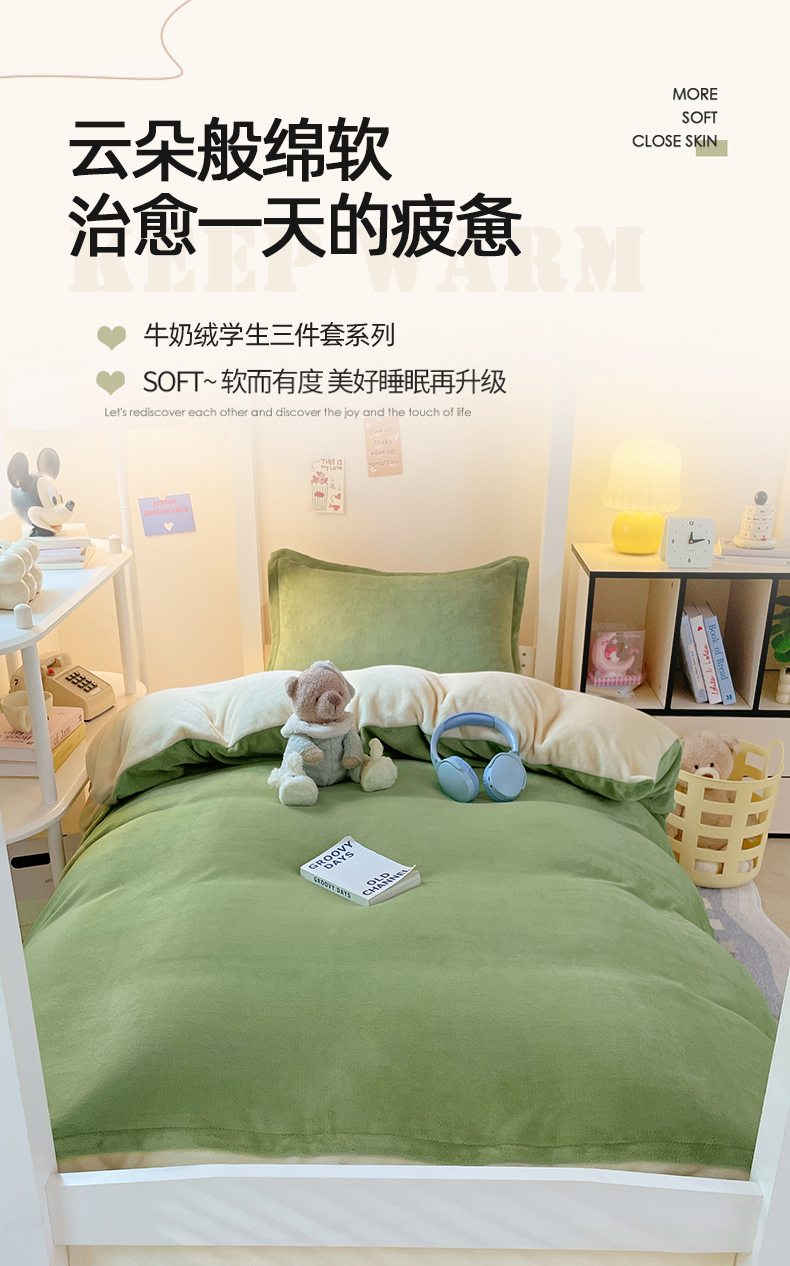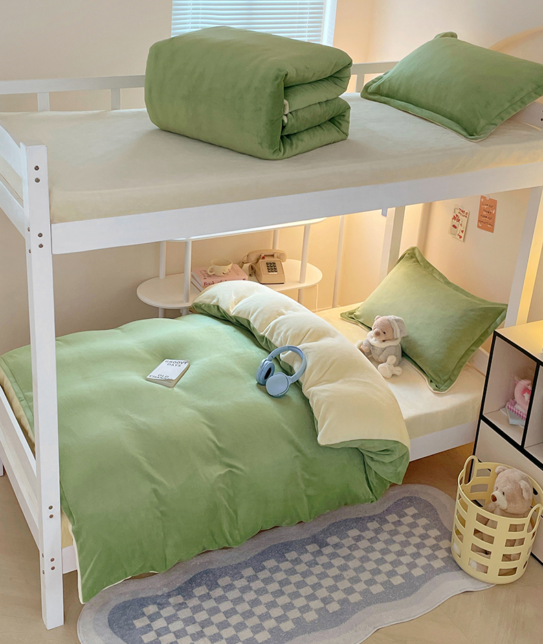 当前位置: 91家纺网 > 商品网购 > 床品套件 > 三件套 > 锦润家纺 2025新款亲肤舒适牛奶绒三件套学生三件套上下铺三件套宿舍三件套 抹茶绿+奶昔白