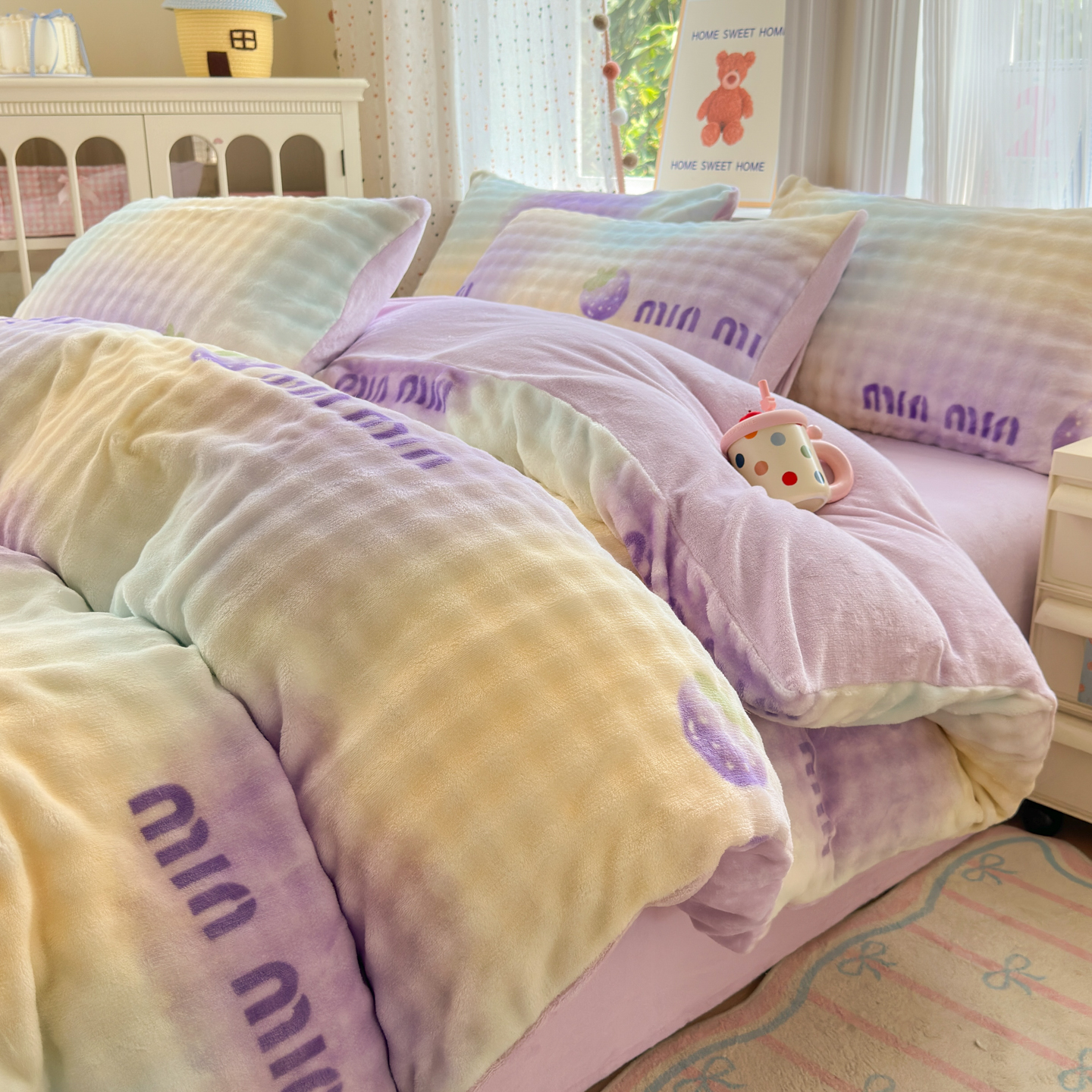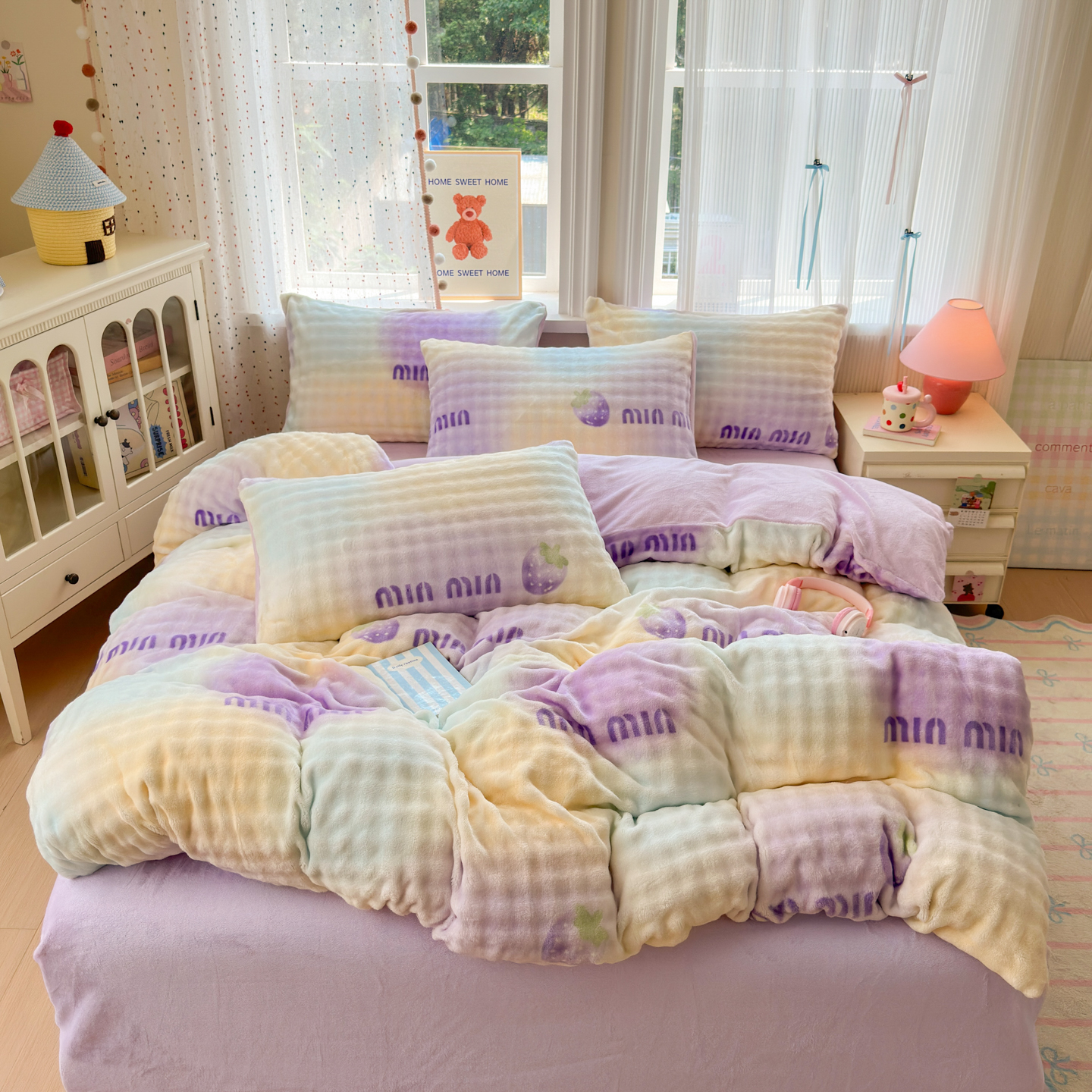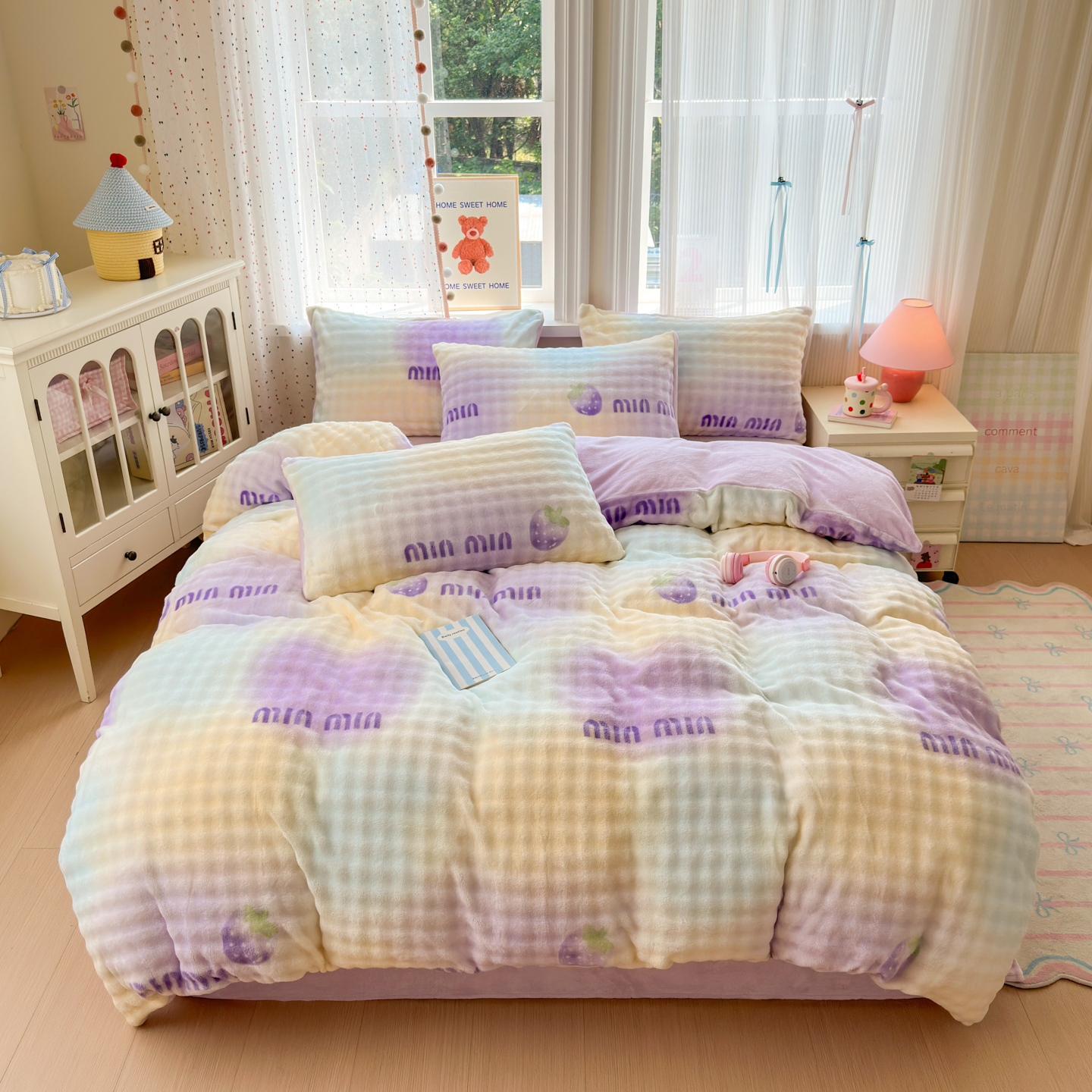 (总)德比尔斯 2025新款暗合印花牛奶绒四件套,爱心-紫,波点-紫,布朗尼,豆蔻-紫,粉格樱桃,蝴蝶结-灰,蝴蝶结-紫,七彩格,紫香草
