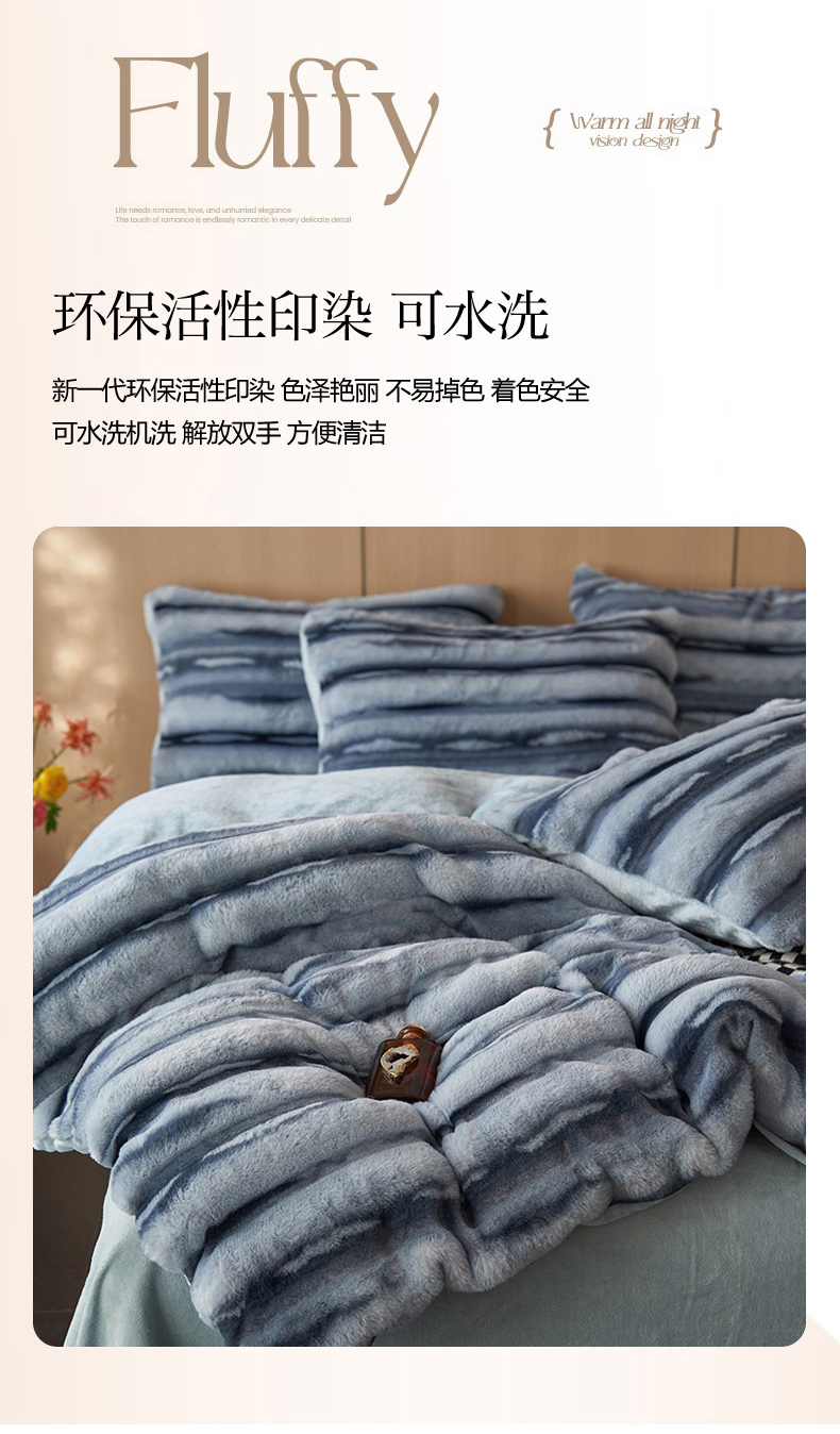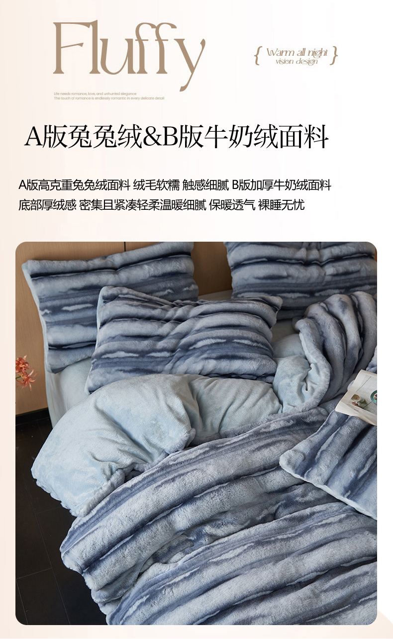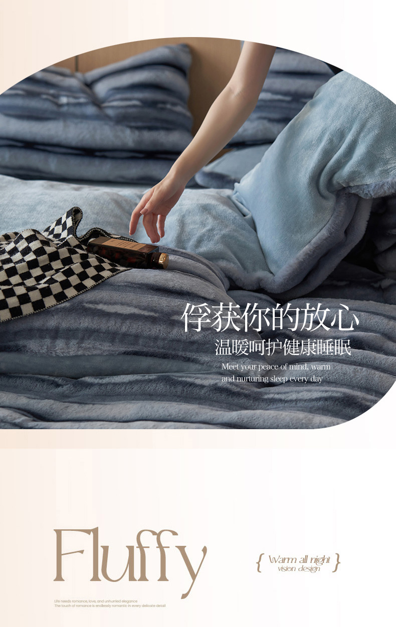 商品名称:眠博士 2025新款兔兔牛奶绒加厚保暖四件套 兔兔绒-条条蓝