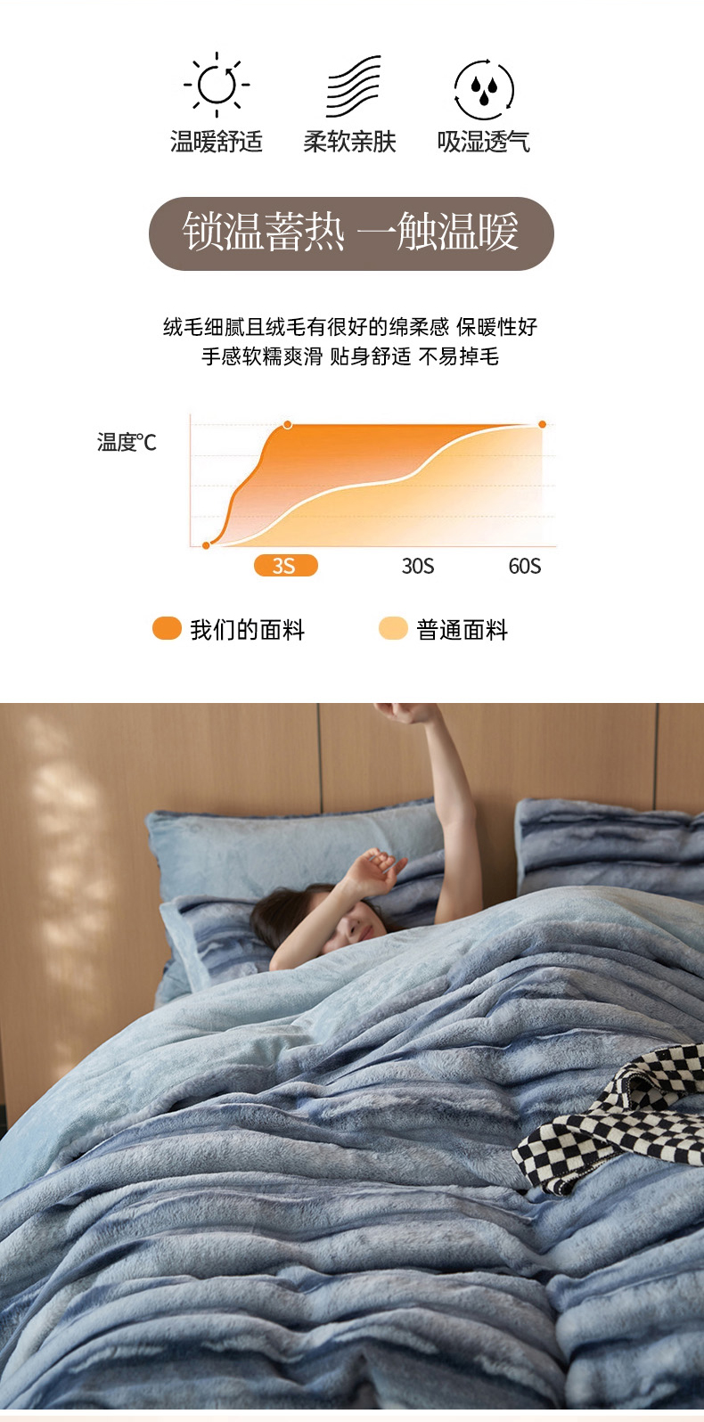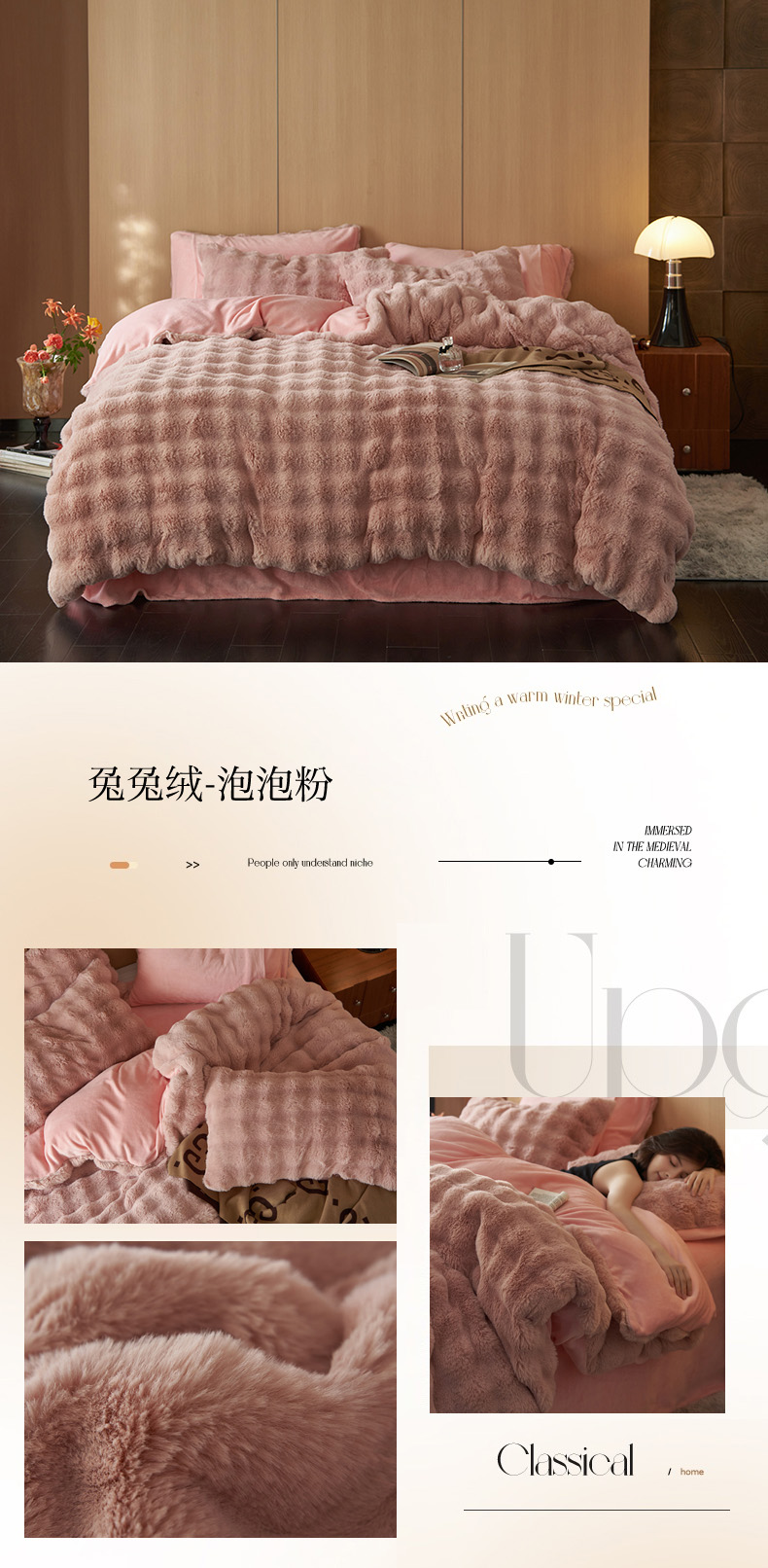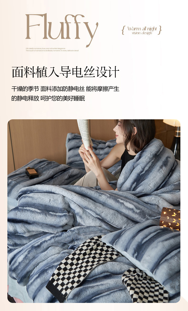 商品名称:眠博士 2025新款兔兔牛奶绒加厚保暖四件套 兔兔绒-条条蓝