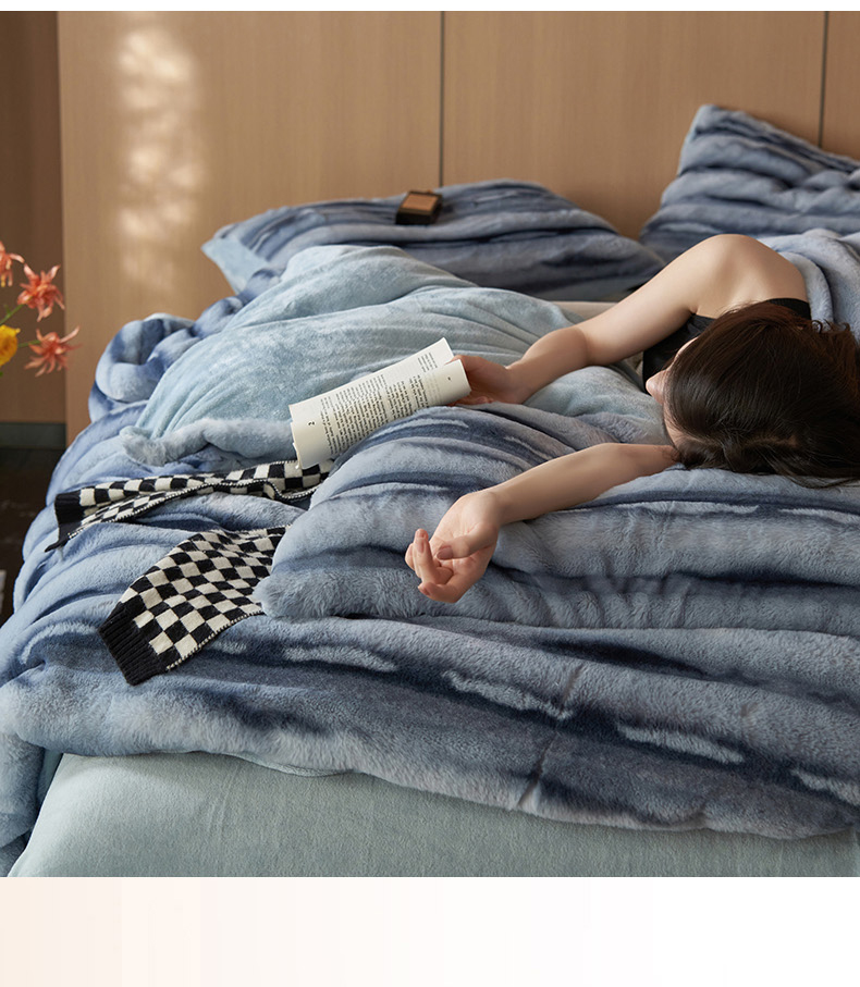 眠博士 2025新款兔兔牛奶绒加厚保暖四件套 兔兔绒-条条蓝