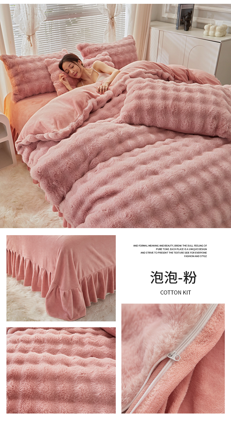 (总)晚悠家纺 2025新款兔毛绒大泡泡牛奶绒七彩泡泡款四件套,七彩粉,七彩灰,七彩咖,七彩绿,七彩紫,兔毛泡泡-白加咖,泡泡-卡其,泡泡-奶白,泡泡-奶白粉,泡泡-浅灰,泡泡-粉,兔毛泡泡-绿,兔毛泡泡-深灰,兔毛泡泡-紫