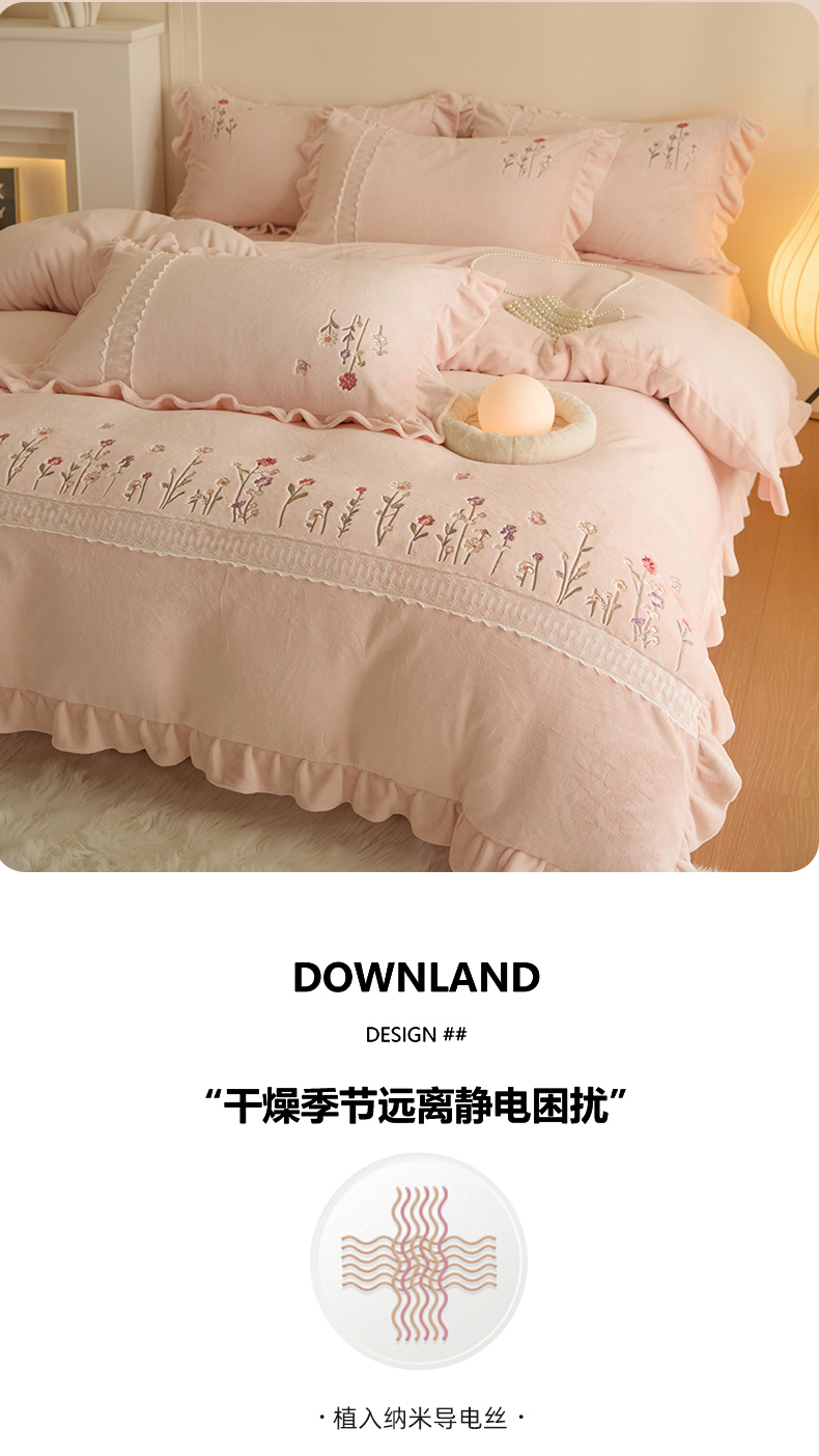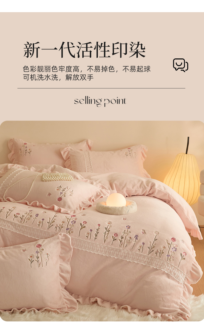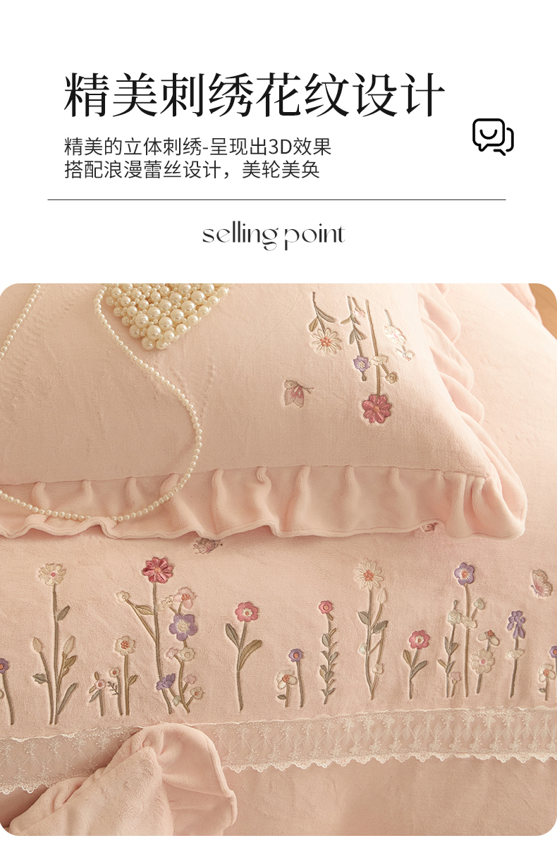 商品名称:艾唯希家纺 2025新款高端全消光公主绒工艺四件套-花意 花意-粉