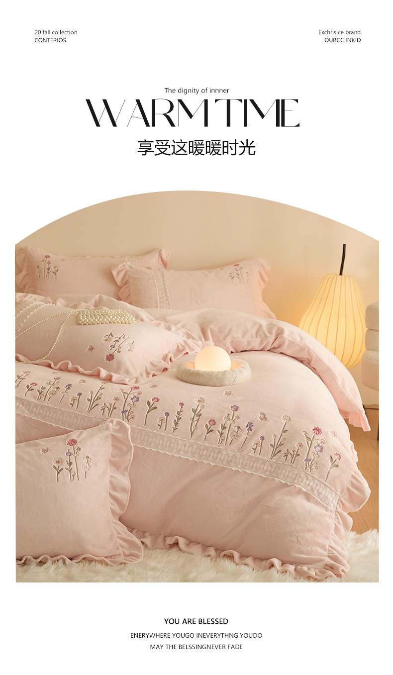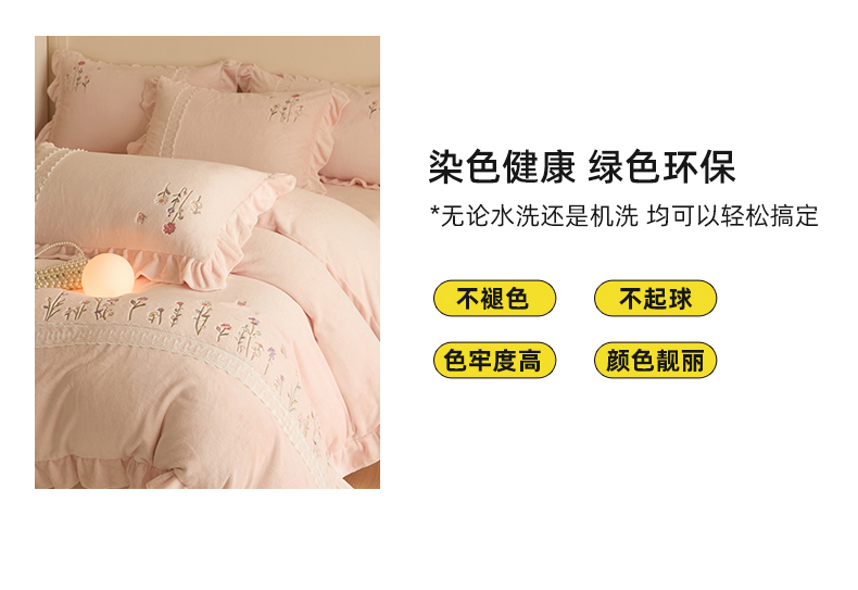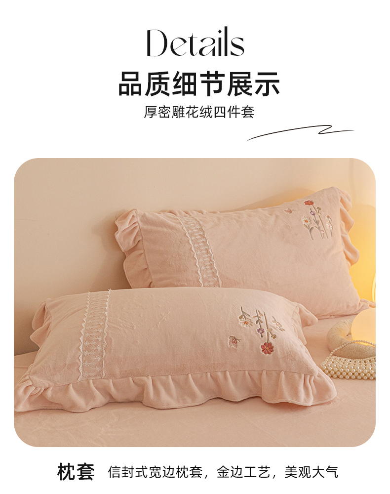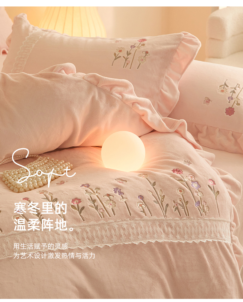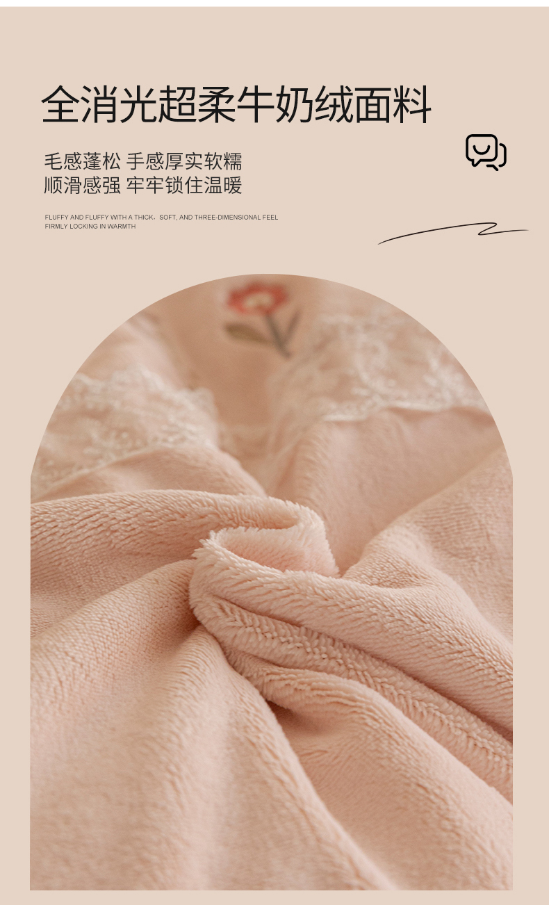 商品名称:艾唯希家纺 2025新款高端全消光公主绒工艺四件套-花意 花意-粉